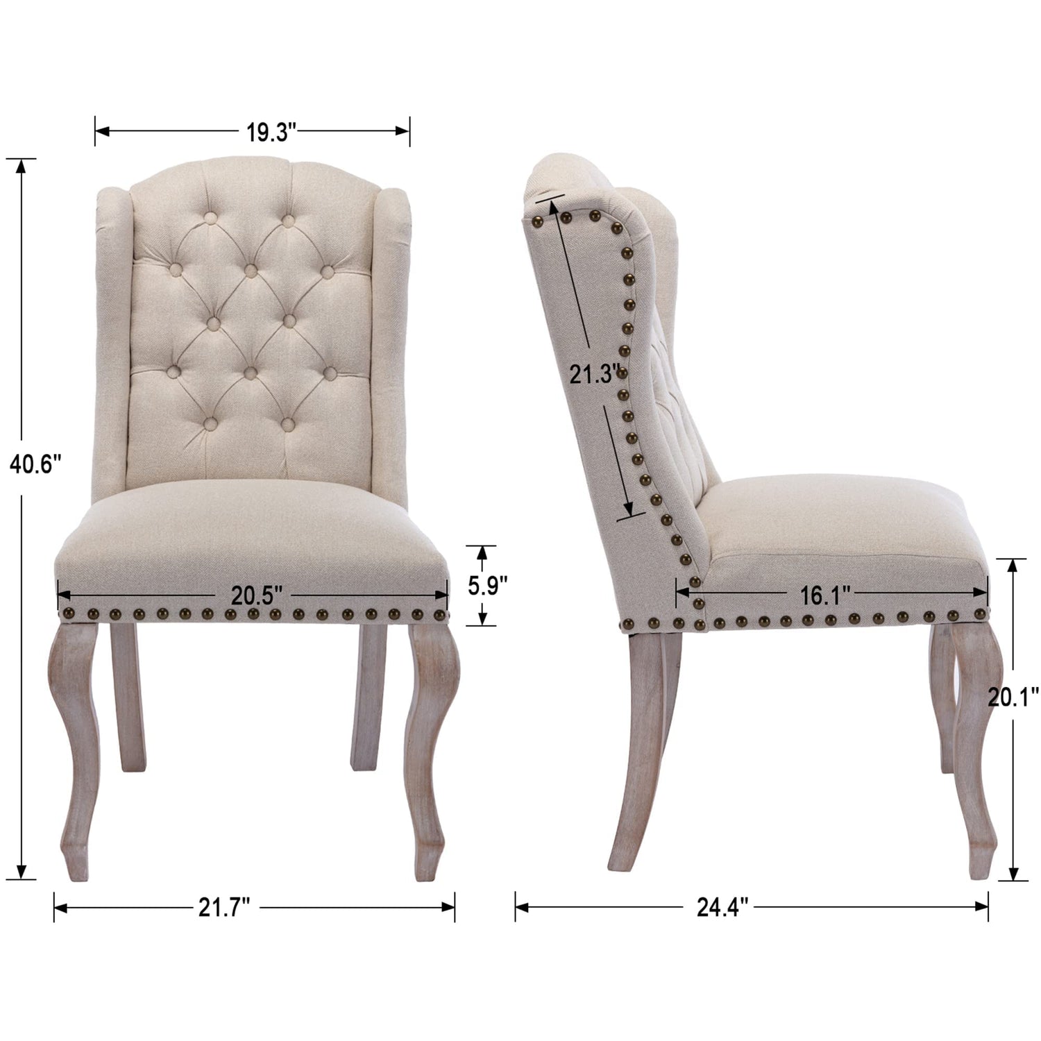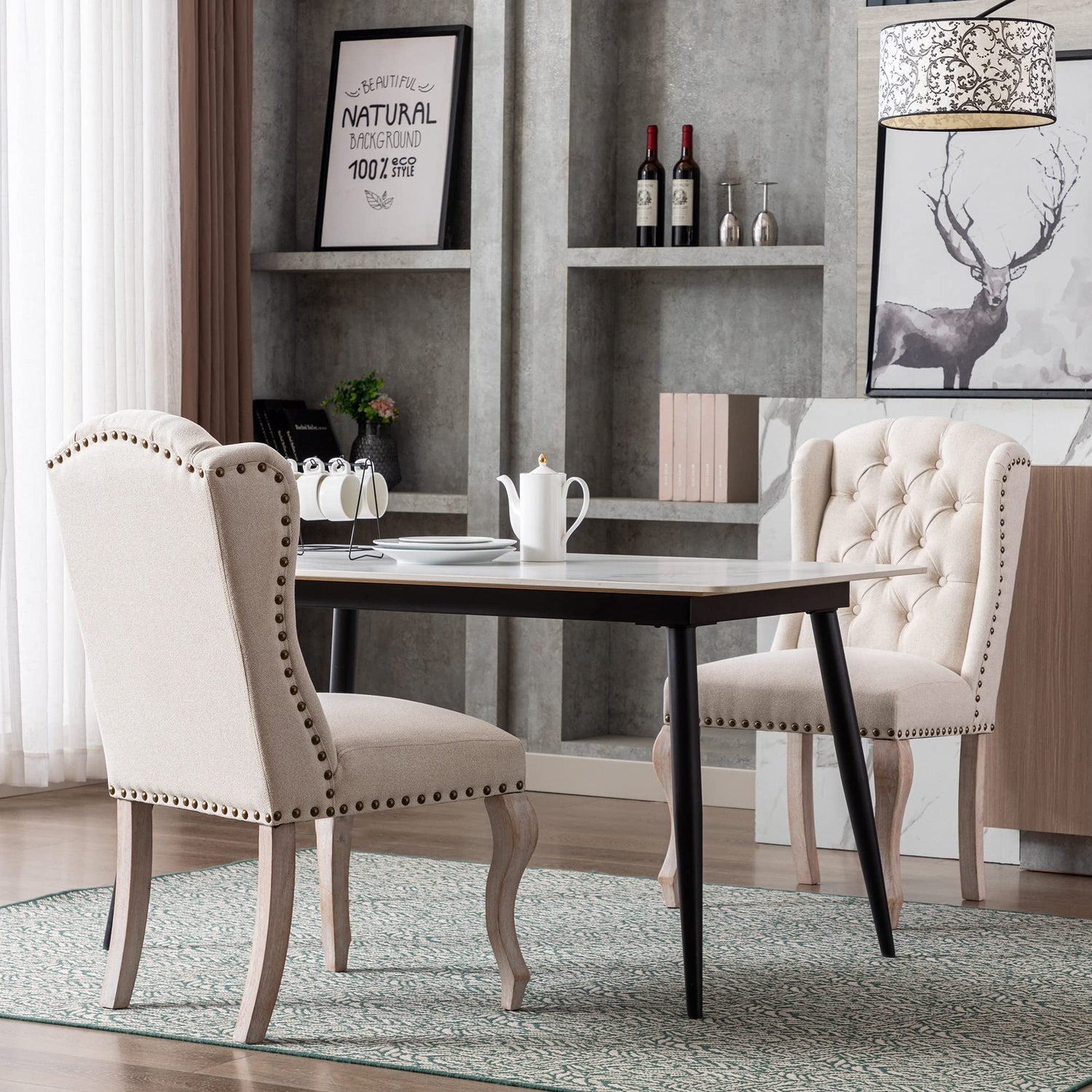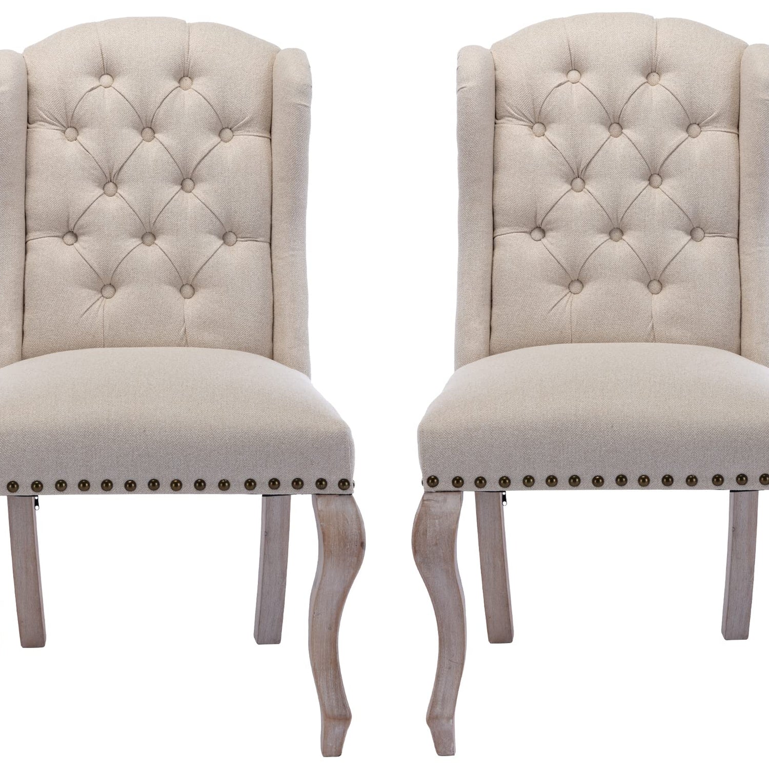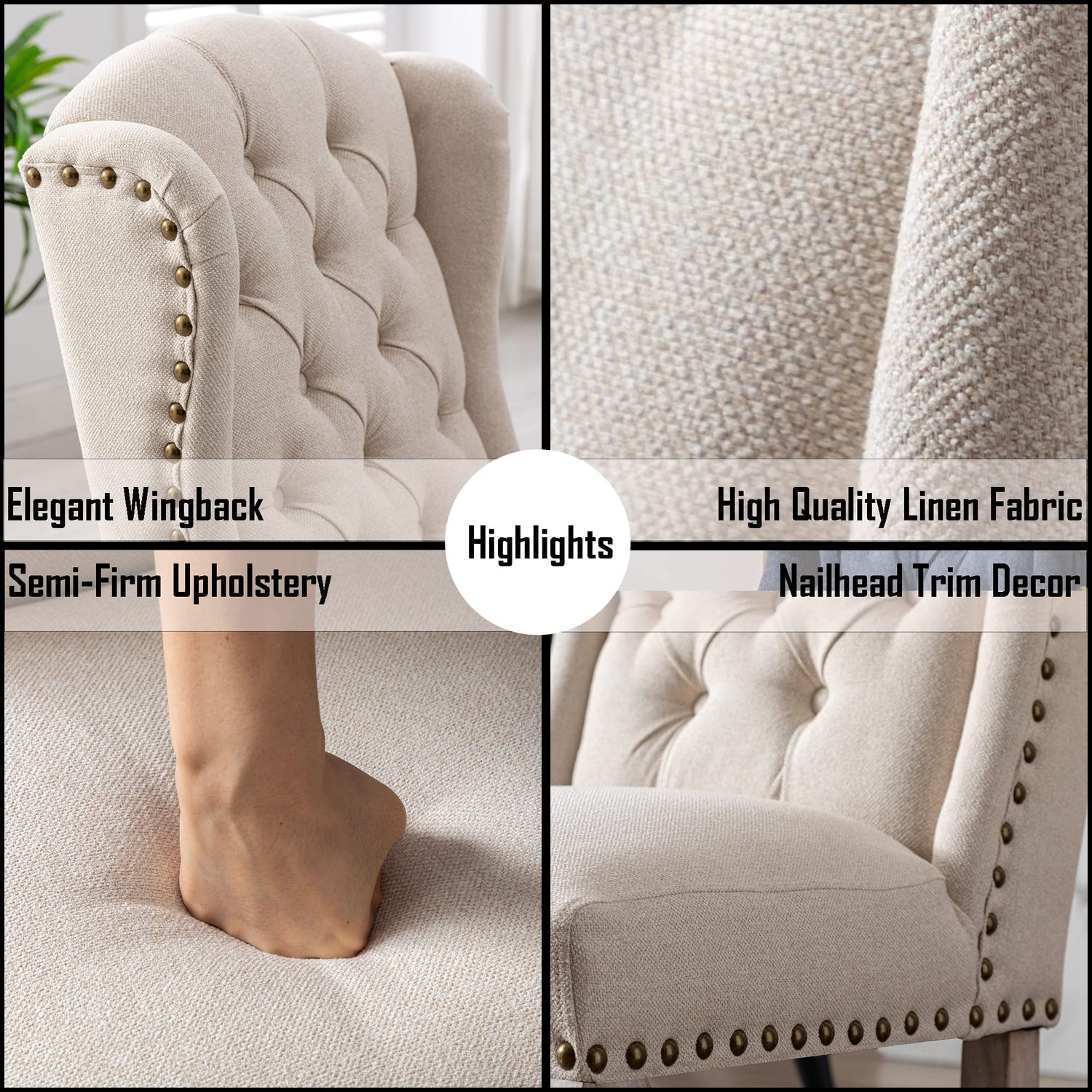 DM Furniture Parsons Dining Chairs Set of 2 Farmhouse Solid Wood Accent Chairs Linen Fabric Host Side Kitchen Chair with Tufted Wingback for Dining Room/Living Room/Bedroom,Cream