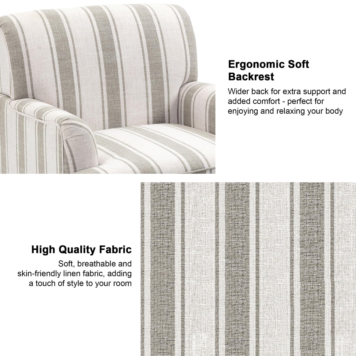 DREAMSIDEA Accent Chair, Mid Century Modern Comfy Armchair for Living Room, Linen Fabric Single Sofa Lounge for Reading Bedroom Apartment Waiting Room with Wood Legs (Brown Stripe, Set of 1)