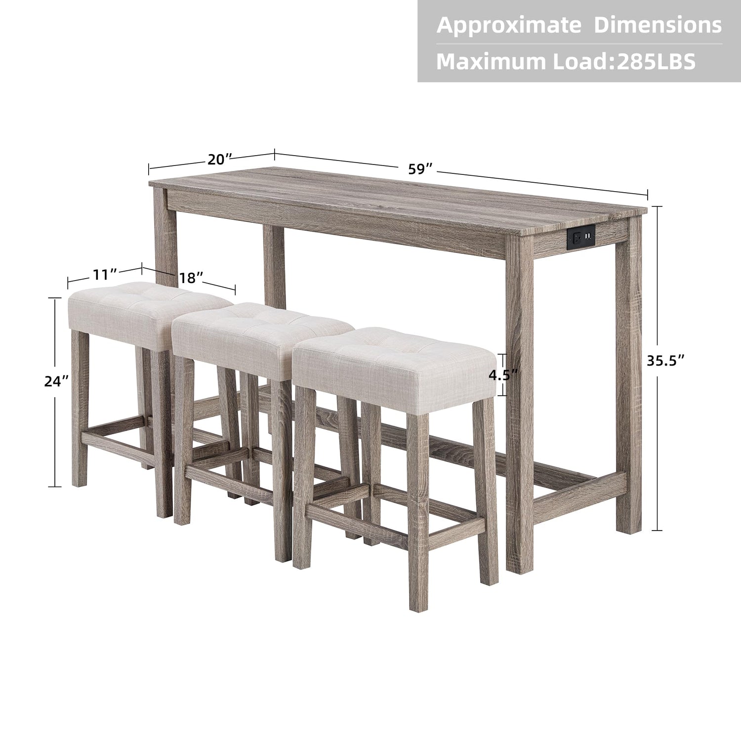 - 4 Pieces Bar Table Set Built-in Power Outlet: The bar table is thoughtfully designed with a built-in power outlet, providing easy access to plug in electronic devices such as laptops, chargers, or other accessories. This feature adds practicality and convenience for both work and leisure activities