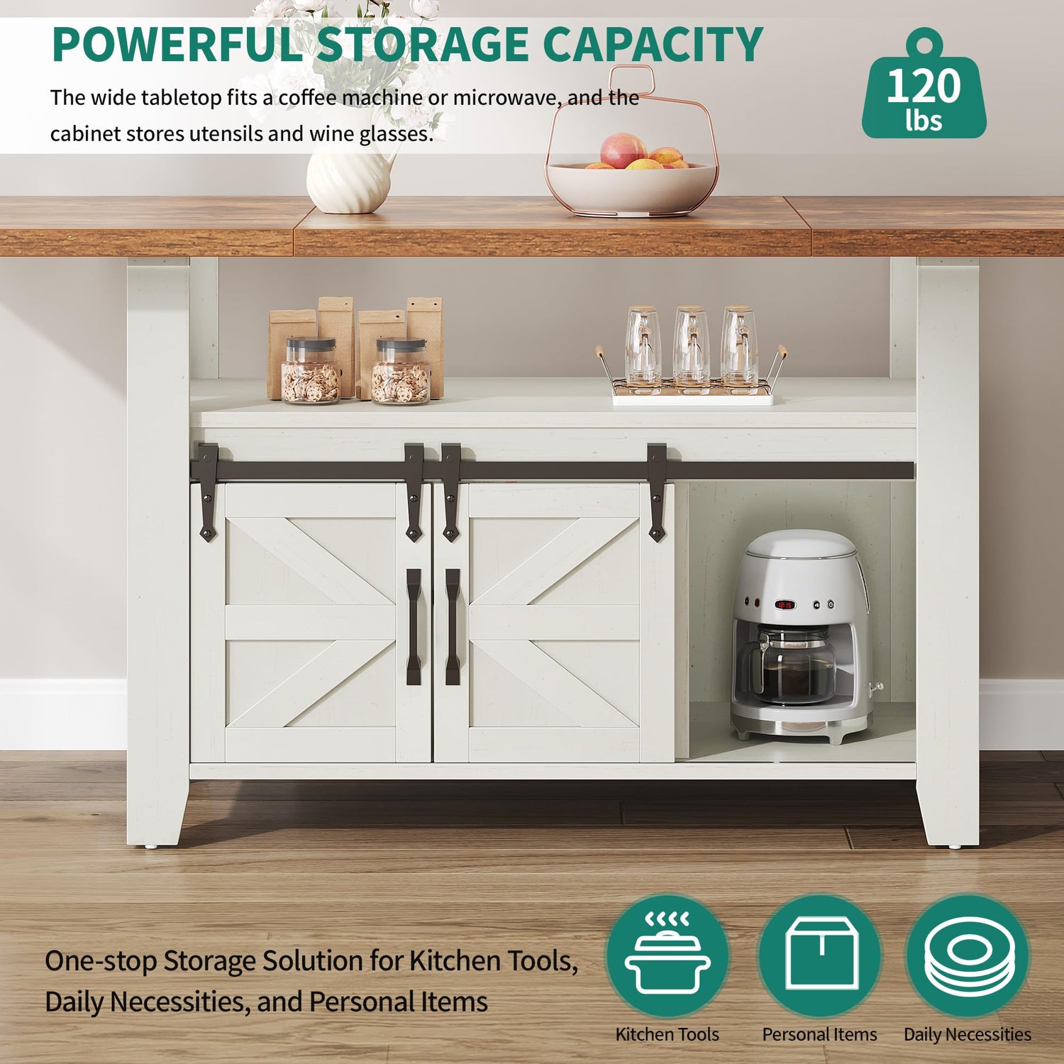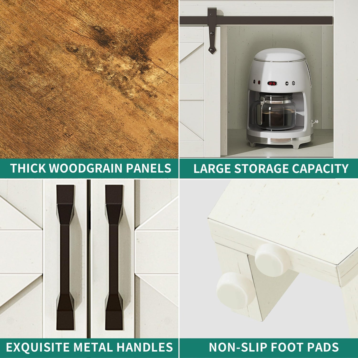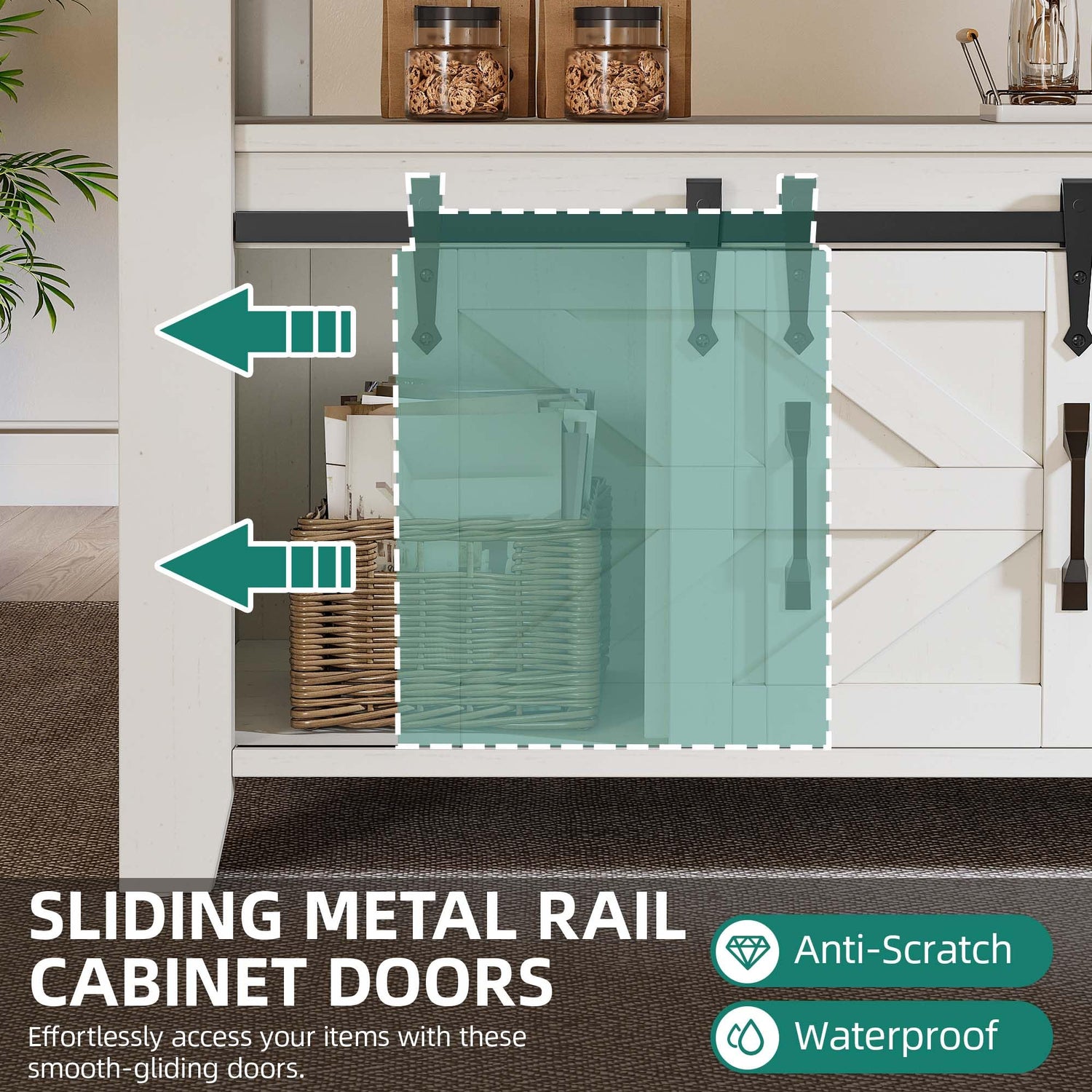 • Farmhouse Dinner Table: The smooth, upgraded metal sliding system makes opening a breeze, no more banging doors. Plus, the chic mix of vintage white and rustic brown, with its sleek metal charm, brings a cozy farmhouse & American vibe to your space
