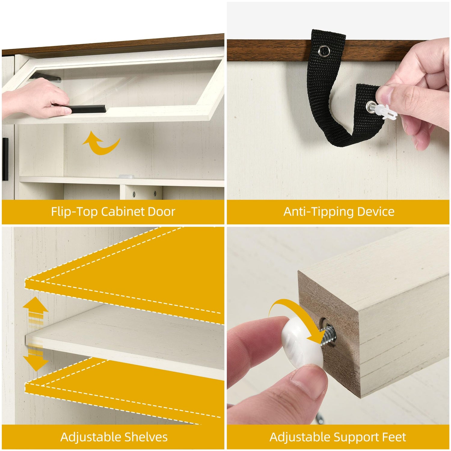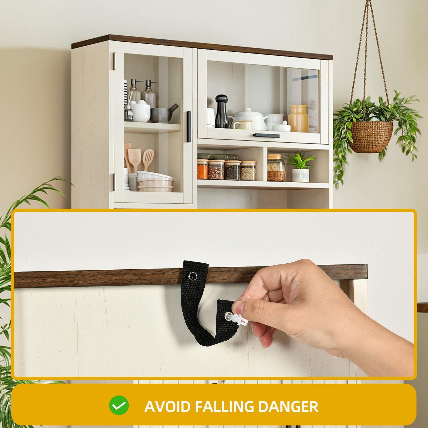 - Charming Rustic Style: Embrace farmhouse charm with this pantry cabinet's milky white finish and warm walnut tones. It enhances your kitchen's ambiance, sparking joy and nostalgia as you share cherished family recipes