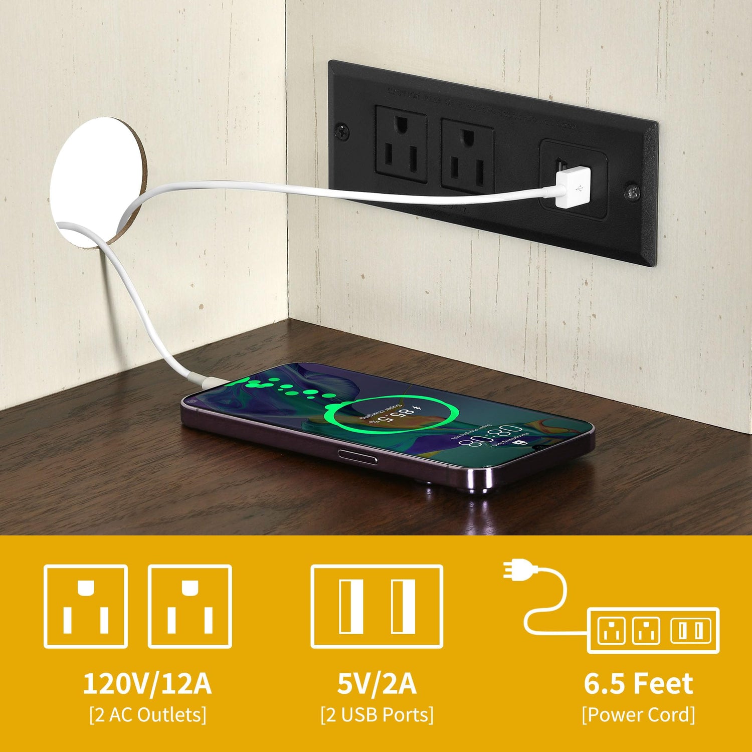 - Built-In Power Station: Always connected! Equipped with 2 AC outlets and 2 USB ports, this cabinet allows for convenient charging of your devices while you work in the kitchen. Each upper cabinet includes wire holes for a tidy appearance