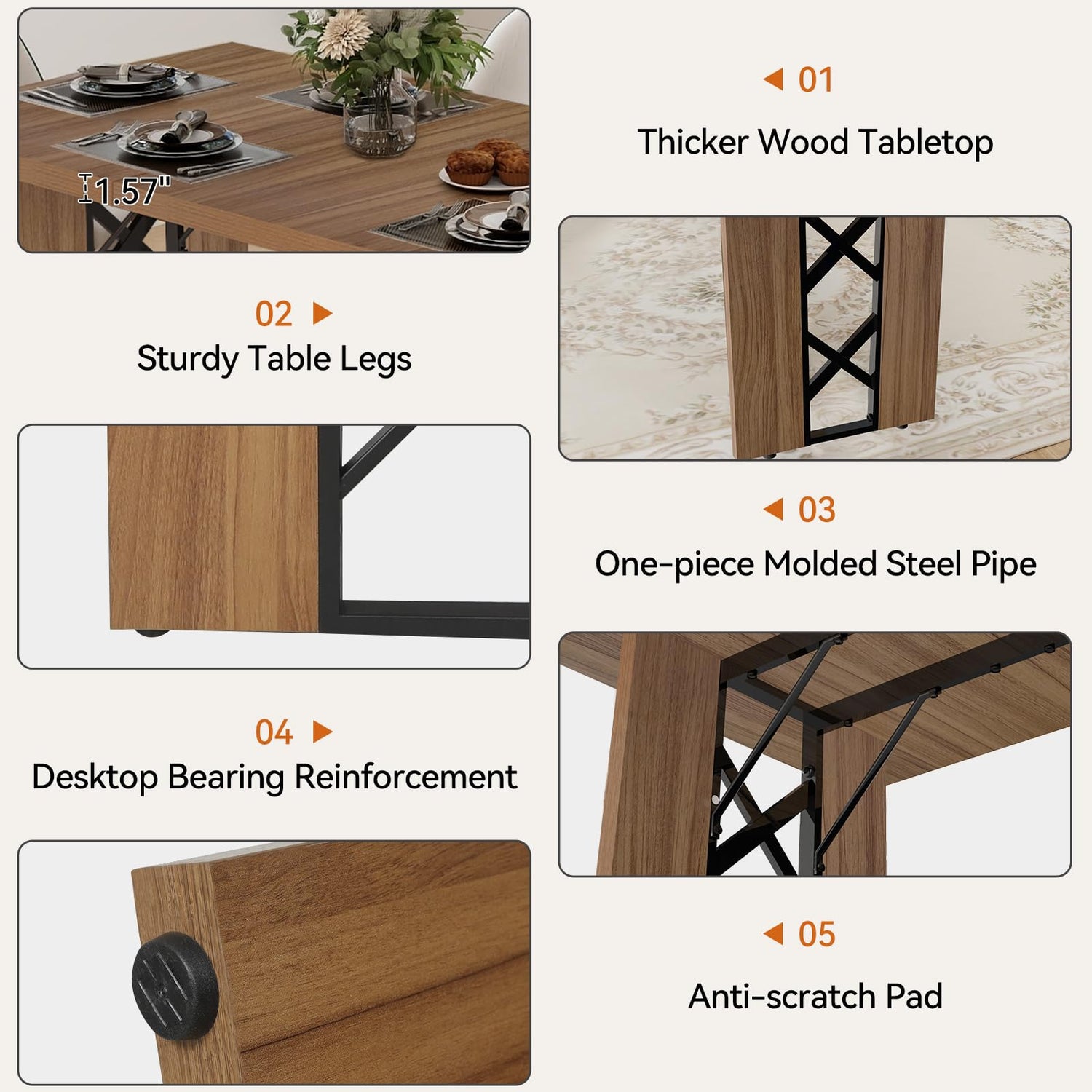 - Strong And Durable Construction: ELECWISH wood dining table is made of high quality thick HDF for durability, smooth and flat surface, and can hold up to 265 pounds. Reinforced legs and leg pads prevent scratches on the floor.
