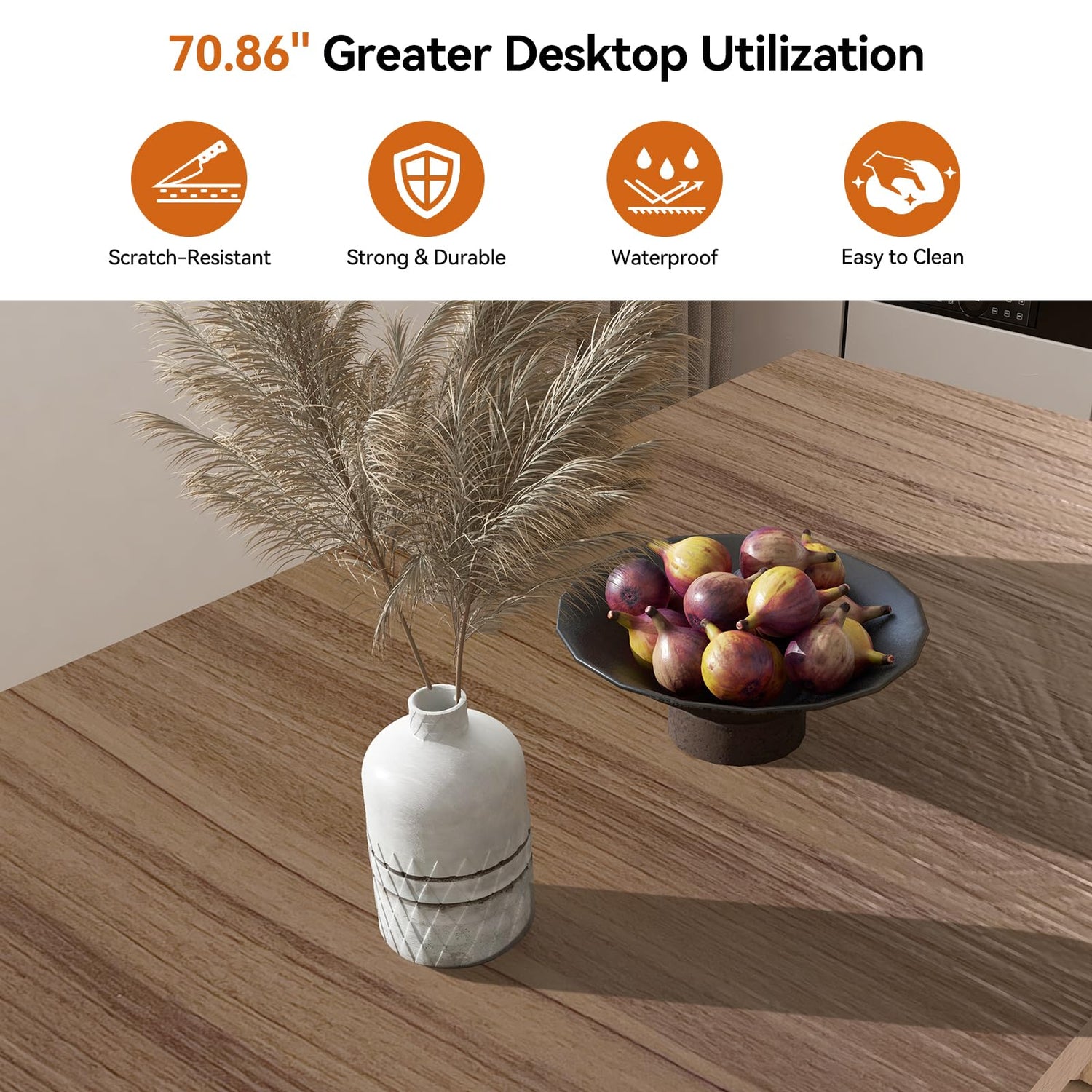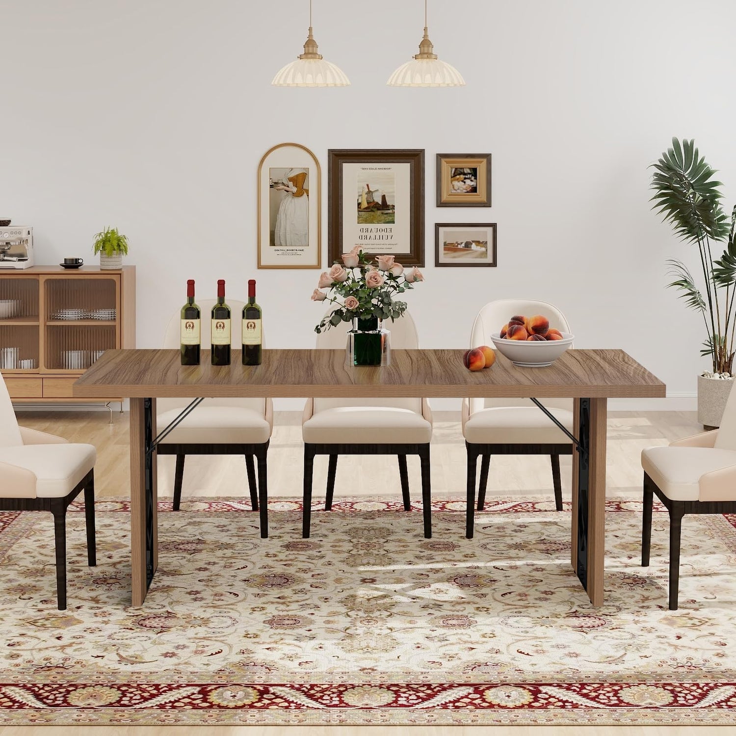 ELECWISH Dining Table for 6-8 People, 71 Inch Wood Rectangular Farmhouse Kitchen Table, Large Industrial Dinner Table with Strong Metal Frame for Dining Room, Outside