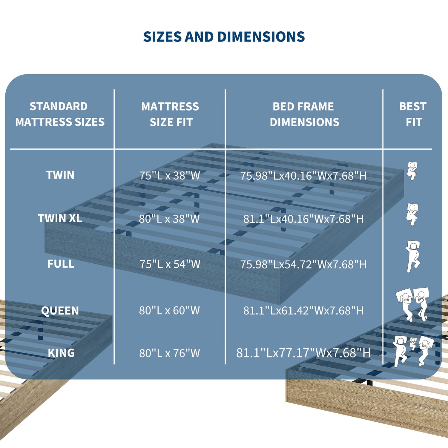 - --Space-Saving Versatility: The headboard-free design allows for flexible placement in small bedrooms, compact apartments, or dorm rooms. Its compact footprint maximizes floor space, making it a practical low bed frame for tight areas
