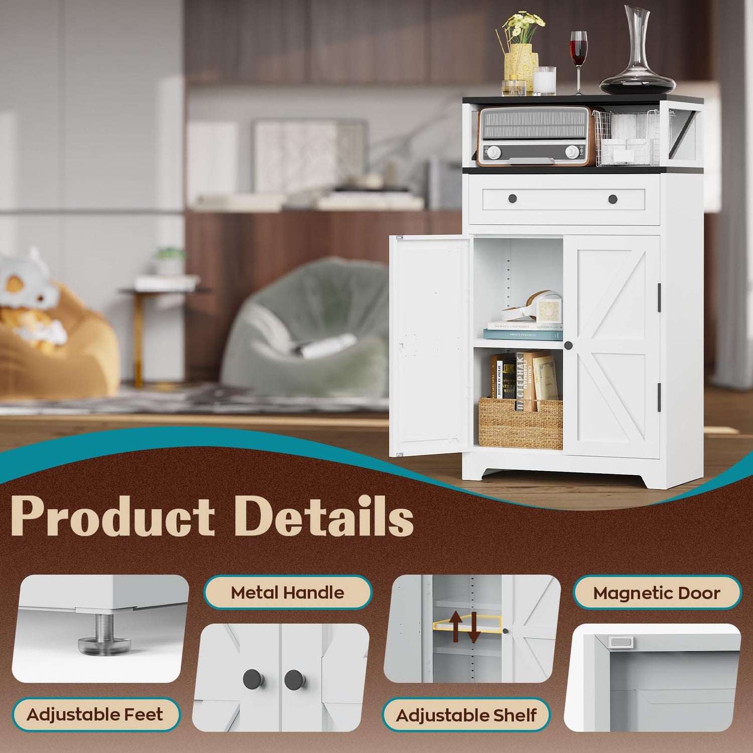 Eltean 42.5" H White Metal Farmhouse Storage Cabinet with Magnetic Doors and Drawer,Sideboard with Adjustable Shelf,Large Capacity Kitchen Pantry Cabinet for Entryway/Living Room/Dining Room
