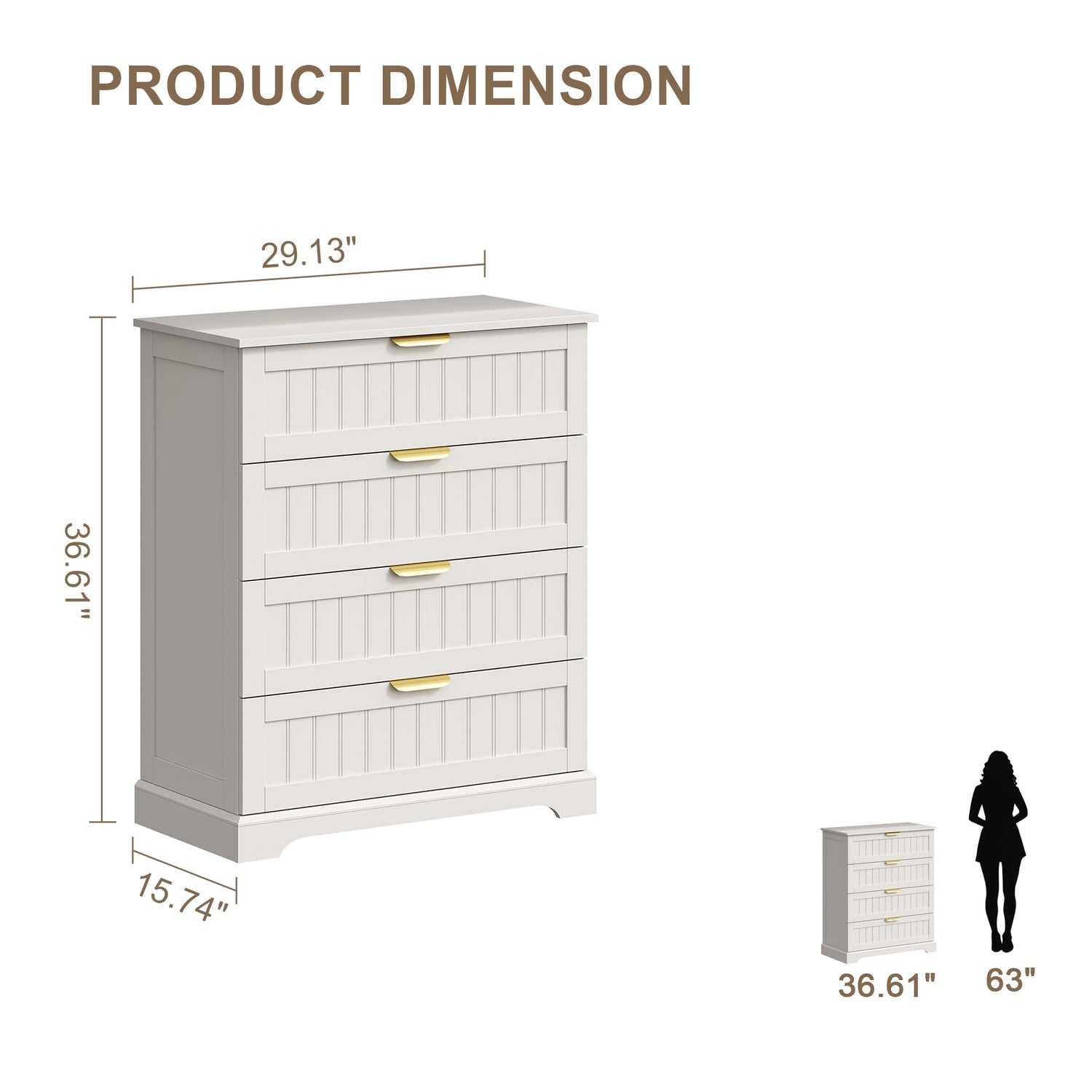 • Modern Farmhouse Style : Featuring a sleek white finish with vertical panel details, this 4-drawer dresser combines modern minimalism and farmhouse warmth, easily complementing various interior décor styles
