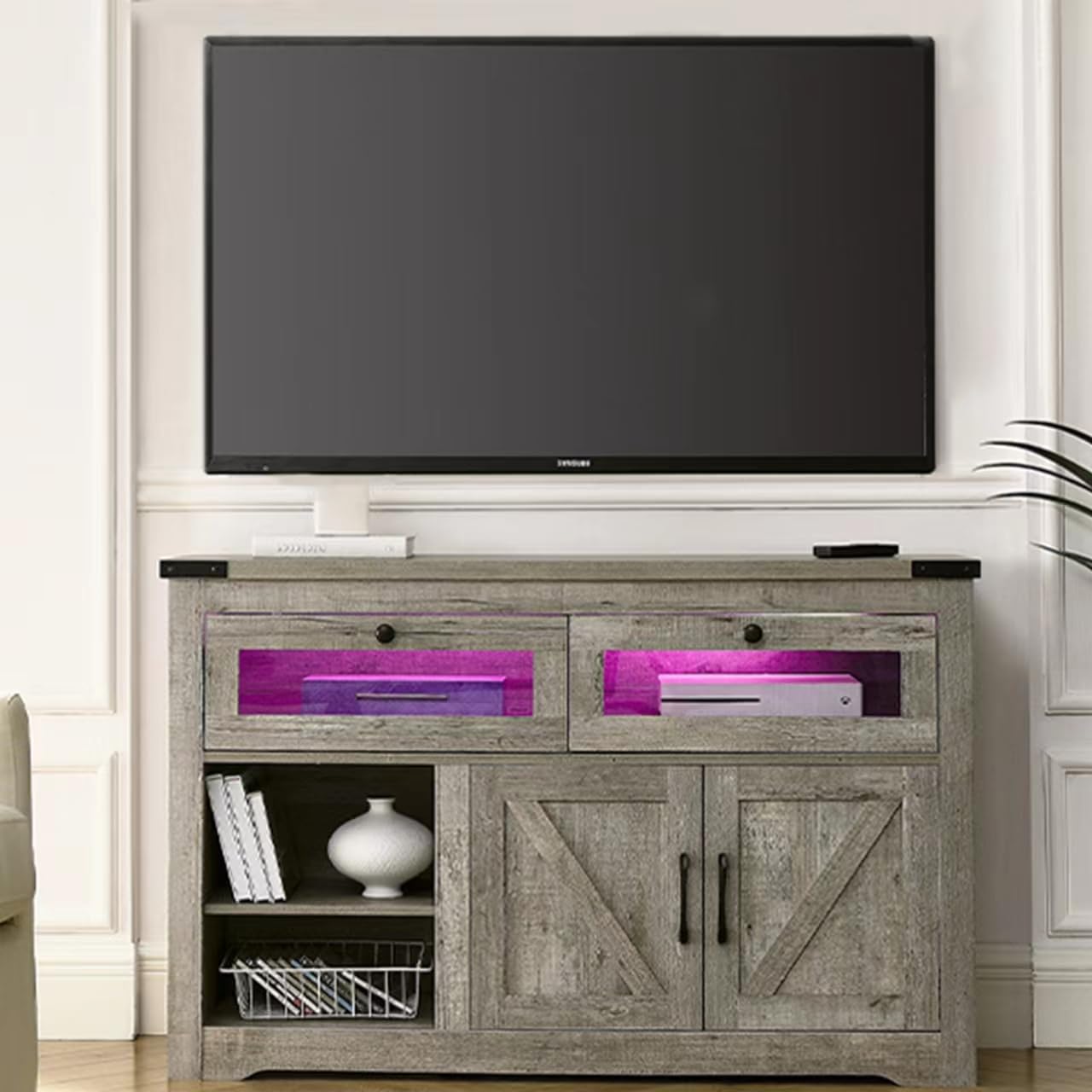 - 【Large Capacity Storage Sideboard】Features 2 viewable drawers and 2 barn doors, as well as a spacious desktop, providing ample space to store and organize your items, the overall size is: 47.24''(L) *15.55''(W)*29.33''(H), weight is 90.2 pounds. The sideboard has a built-in shelf that can be adjusted at 3 angles. Large items can be taken out and placed when needed. Estimated load capacity of 200 pounds.