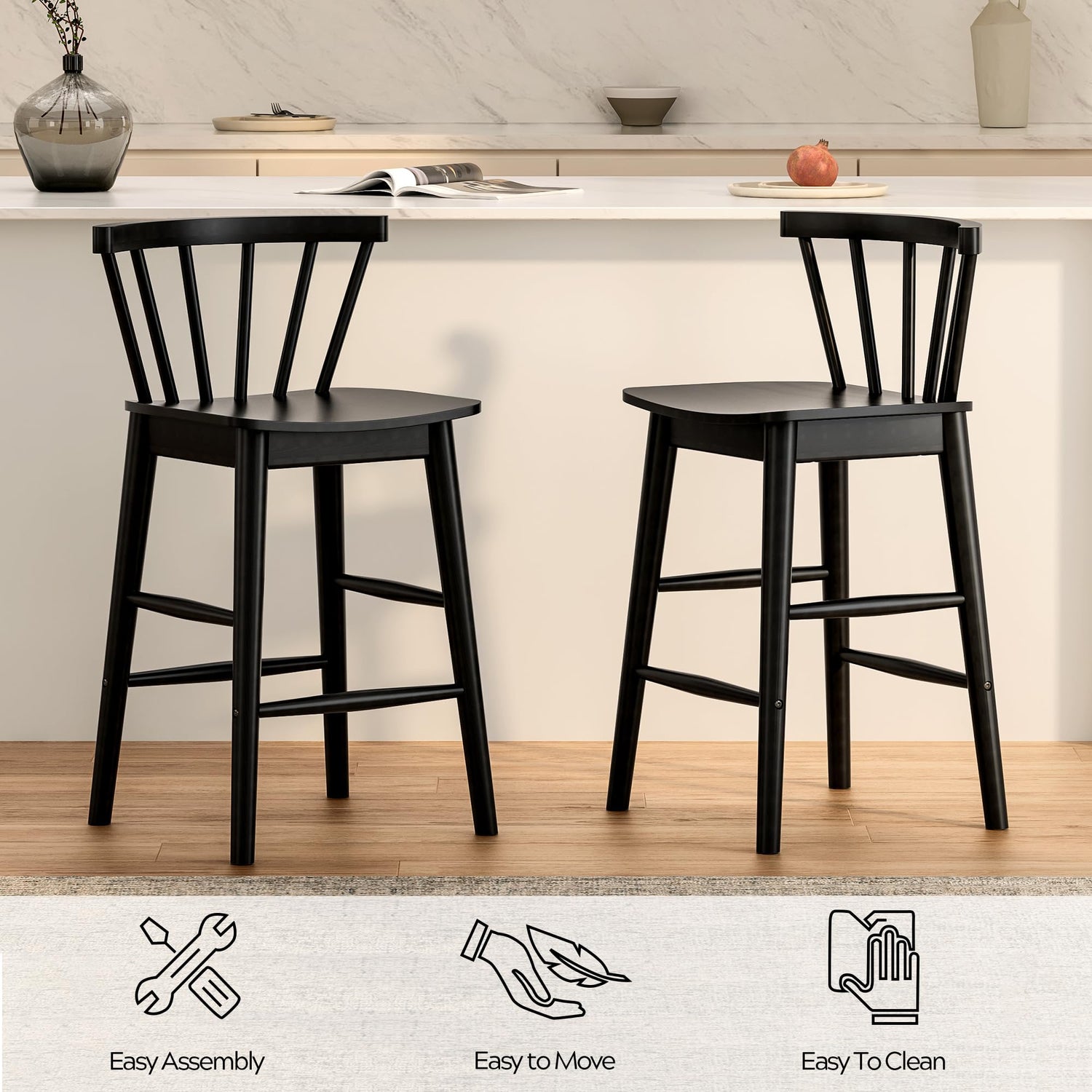 EYYTHUNG Wood Bar Stools Set of 3, 24" Barstool Farmhouse Counter Stools with Curved Back for Dining Room, Black