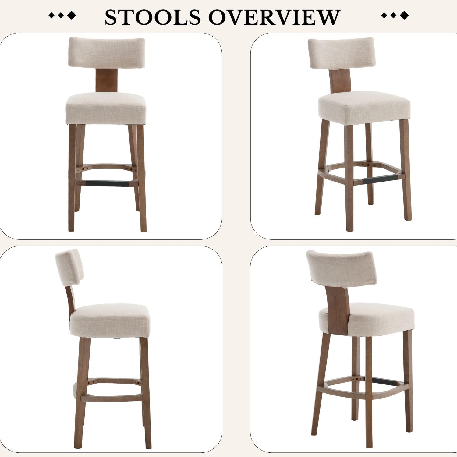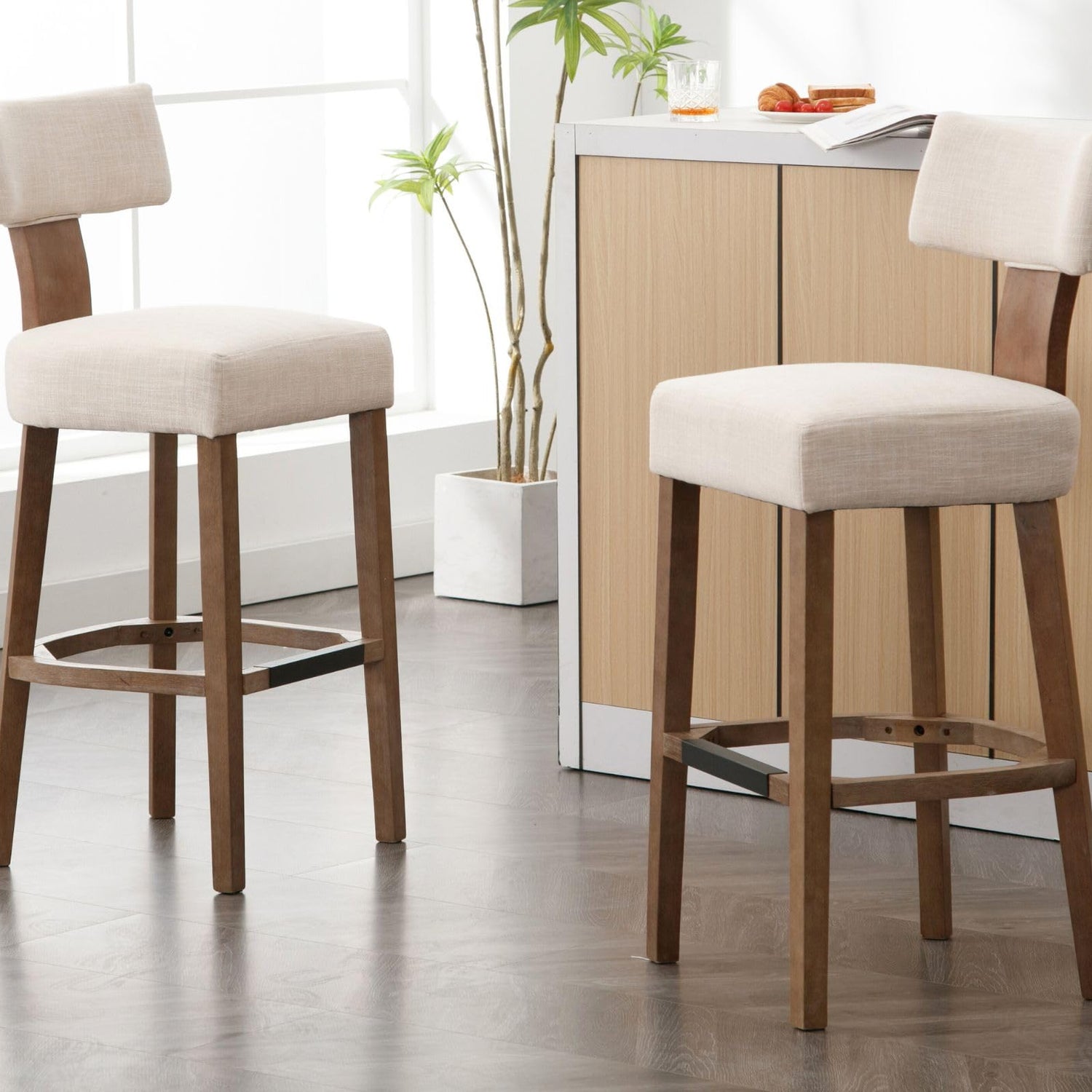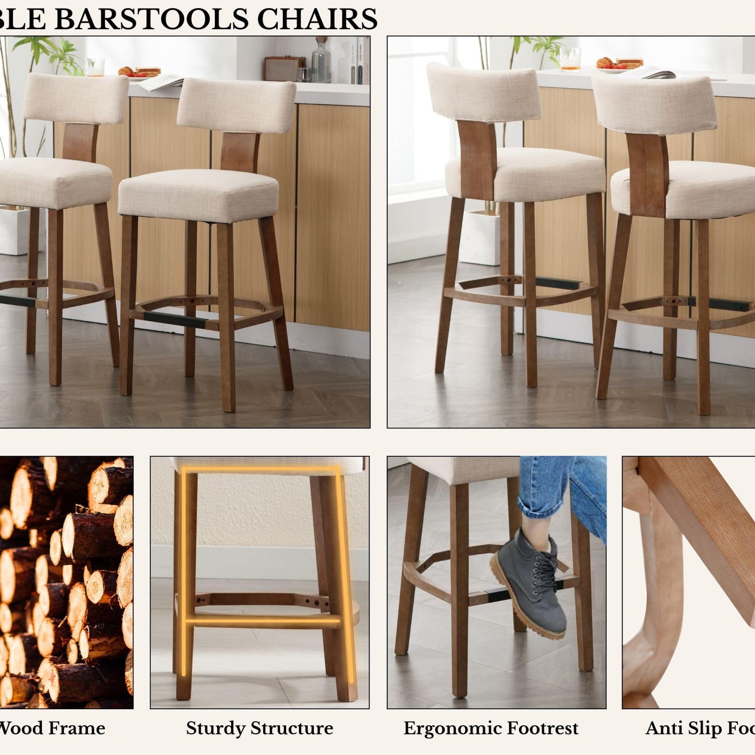 Farmhouse 30'' Extra Tall Bar Stools Set of 2 Modern Counter Height Barstools with Backs Rustic Wood Bar Stools Linen Upholstered Counter Chairs Kitchen Island Stool Chairs with Wood Frame, Beige
