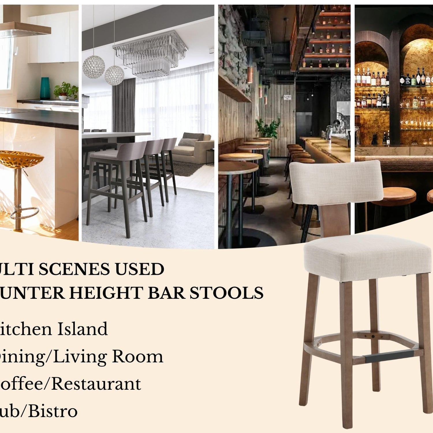 - The Perfect Size Saves Space- the height from the seat cushion to the floor is 30.25 inches. A stool with a counter height is perfect for countertops that are 40 to 46 inches high. Adopting a minimalist design without armrests, you can easily place them in small spaces or corners, or easily stuff them under any counter or table, so they won't take up too much space when not in use