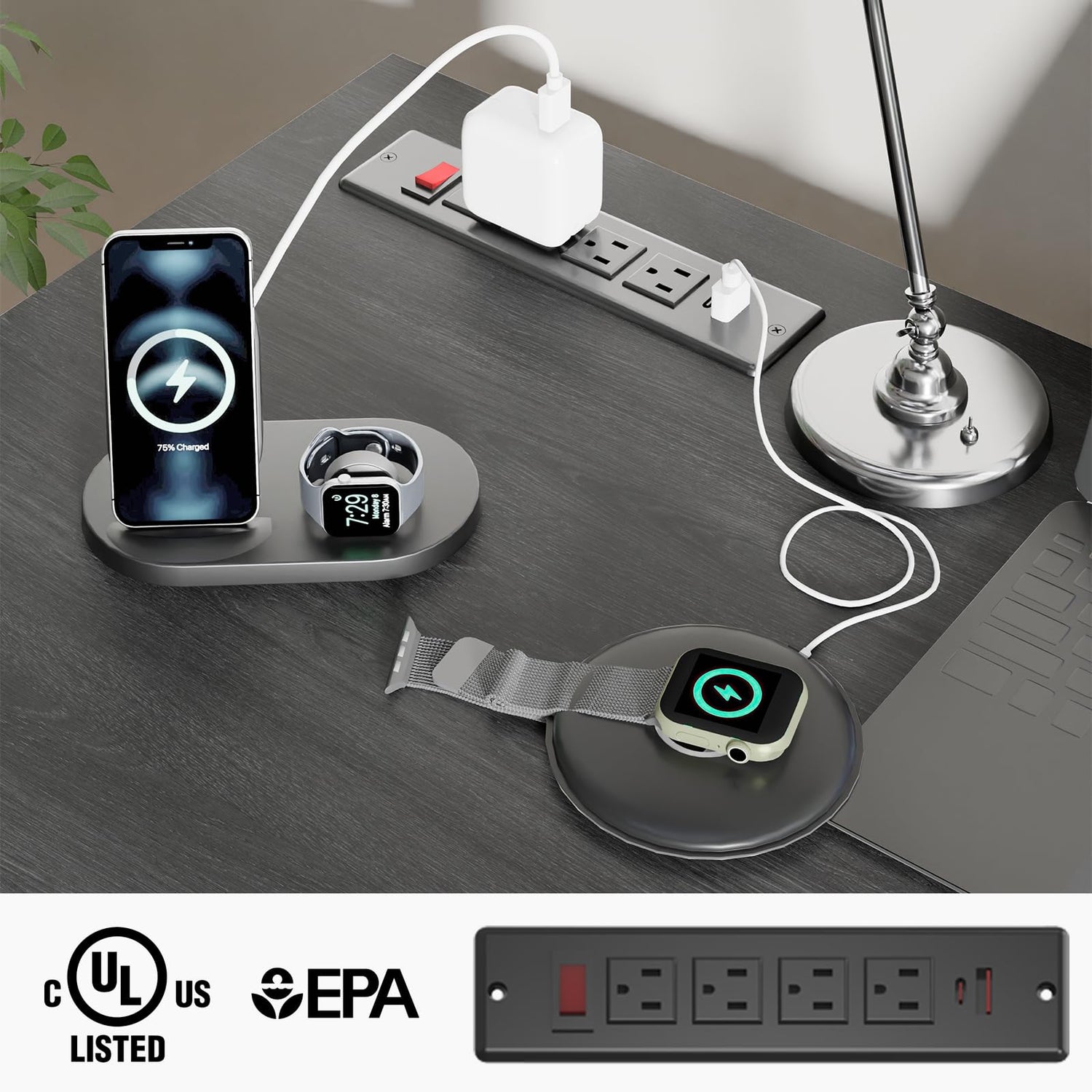 - 【Convenient Charging Station】Our charging hub features 4 outlets and 2 USB ports, allowing simultaneous power supply for up to 6 devices. It includes an on-off switch for safe electricity usage and convenient one-button power-off functionality, enhancing security. The power outlets accommodate charging for a variety of devices such as cell phones, tablets, and laptops.
