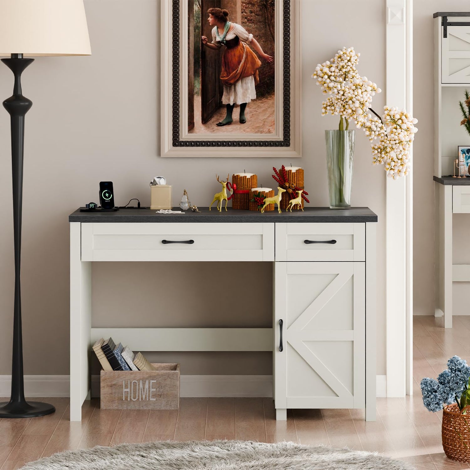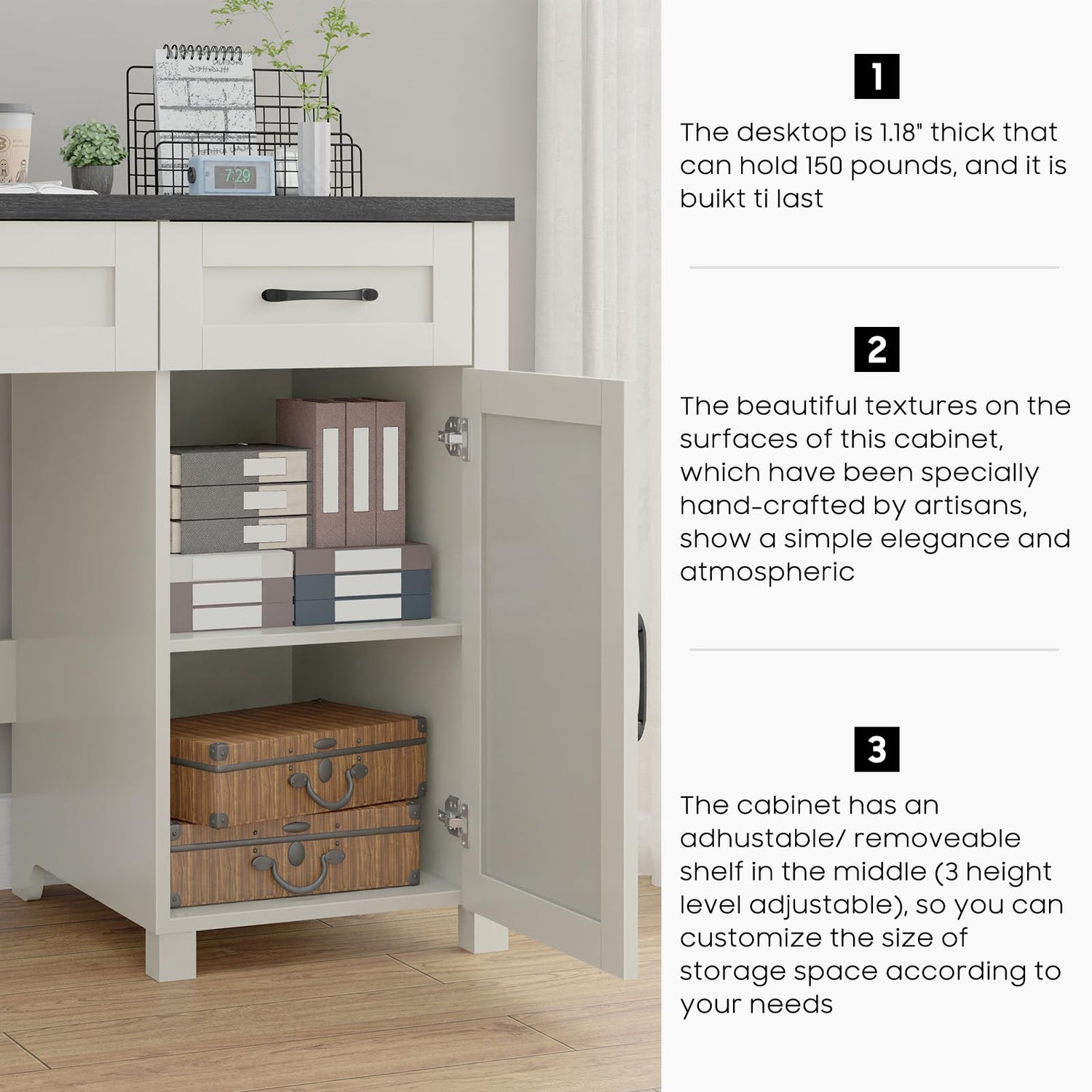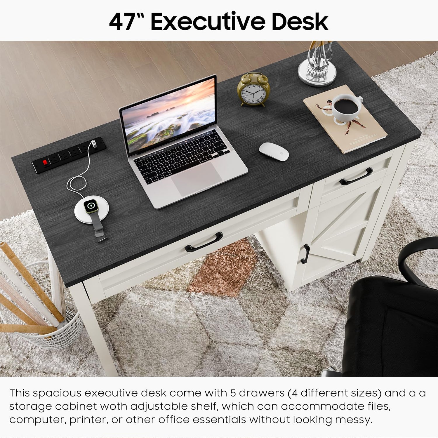 Farmhouse 47" Executive Desk, Computer Desk with Drawers and Storage Cabinet, Workstation Computer Desk for Home Office, Study.