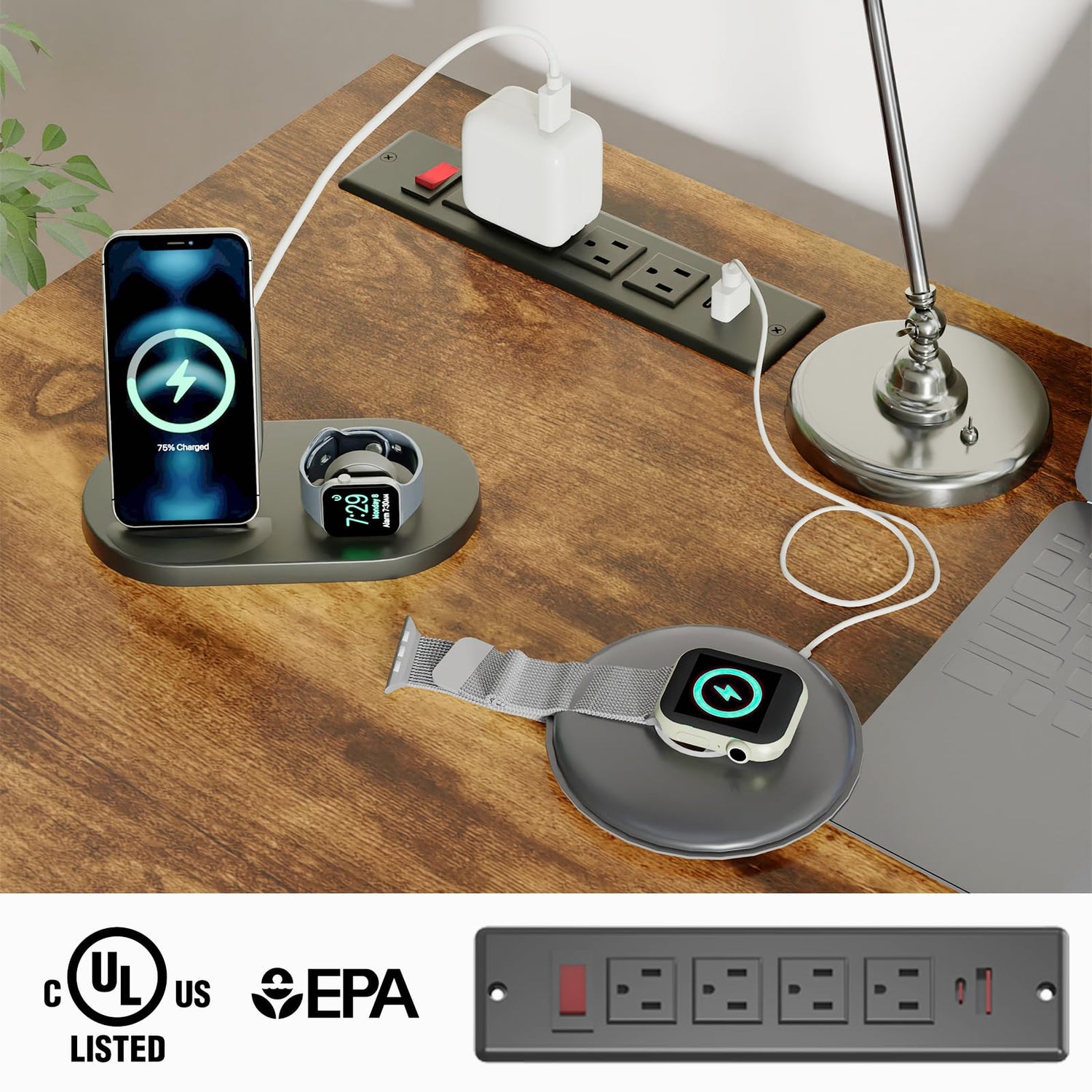 - 【Convenient Charging Hub】Our desk features a convenient charging station with 4 outlets and 2 USB ports, capable of powering up to 6 devices simultaneously. The included on-off switch ensures safe electricity usage and offers a one-button power-off function for added security. Perfect for charging cell phones, tablets, laptops, and other electronic devices, this charging hub keeps your workspace tidy and organized.