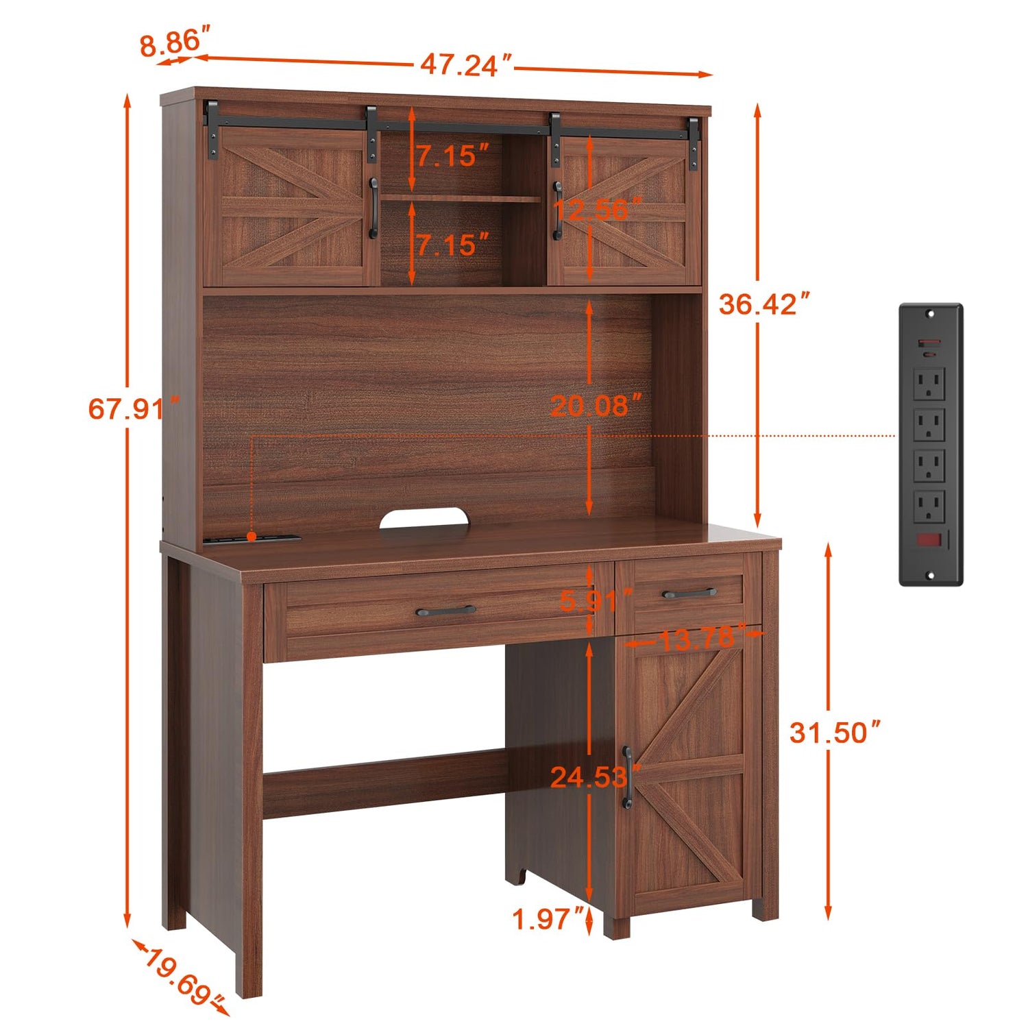Farmhouse 47" Executive Desk, Computer Desk with Storage Cabinet and Drawers, Workstation Computer Desk with Hutch for Home Office