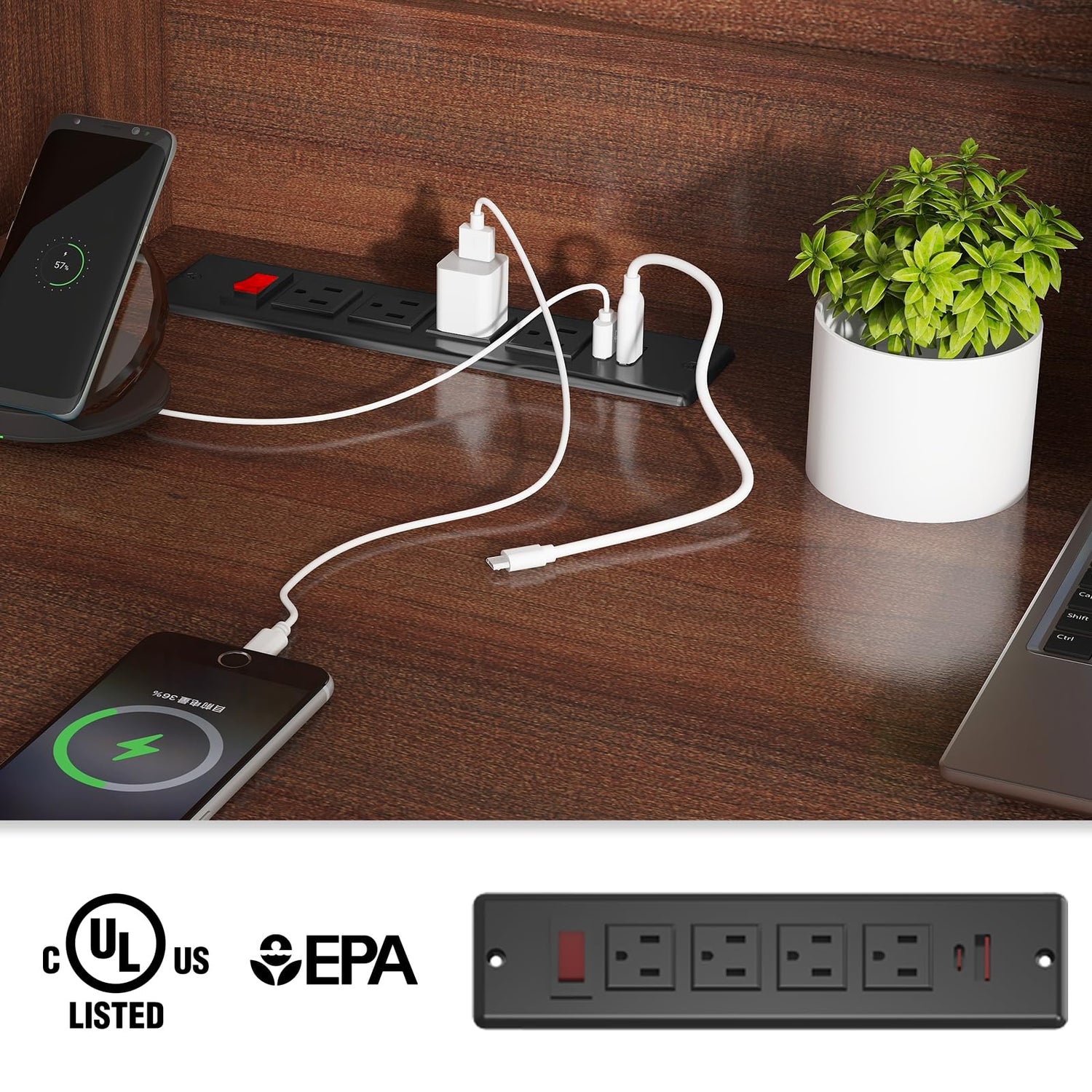 - 【Convenient Charging Station】 Our charging hub features 4 power outlets and 2 USB ports, enabling simultaneous charging for up to 6 devices. With an on-off switch, it guarantees safe electricity usage and provides the convenience of one-button power-off functionality, enhancing security. The power outlets are compatible with a range of devices, such as cell phones, tablets, and laptops.
