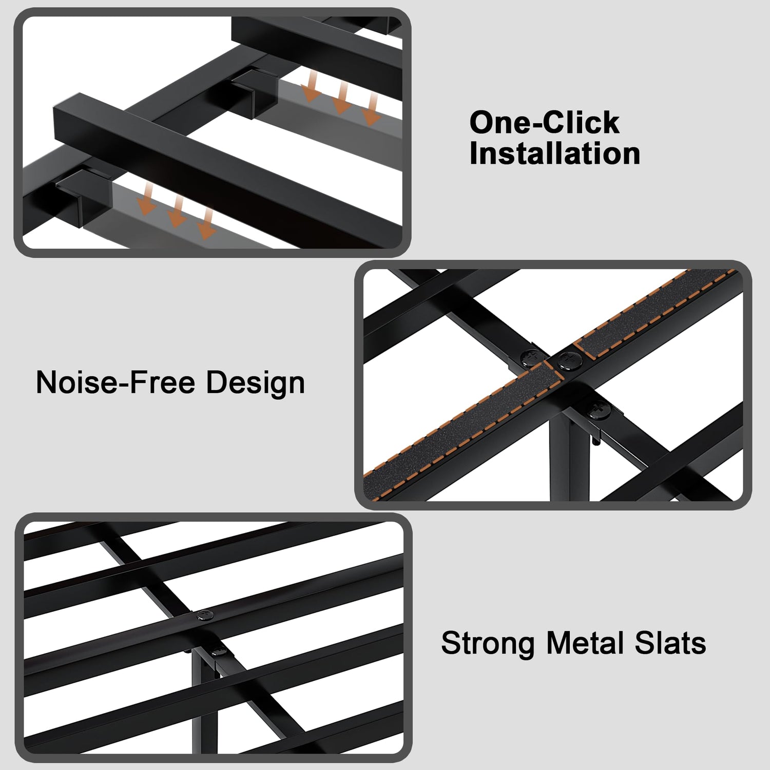 Crafted for durability, the Alohappy bed frame boasts a robust all-metal support structure, offering exceptional stability and strength, all without the need for a box spring. It quietly supports up to 1000 pounds, providing peace of mind for a restful night's sleep. Designed for effortless assembly, you can follow the detailed instructions for a quick setup, saving you time and effort.