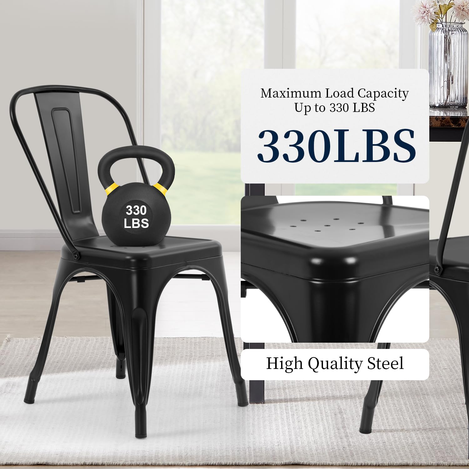 FDW Metal Dining Chairs Set Of 4 Indoor Outdoor Chairs Patio Chairs Kitchen Metal Chairs 18 Inch Seat Height Restaurant Chair Metal Stackable Chair Tolix Side Bar Chairs 330LBS Weight Capacity