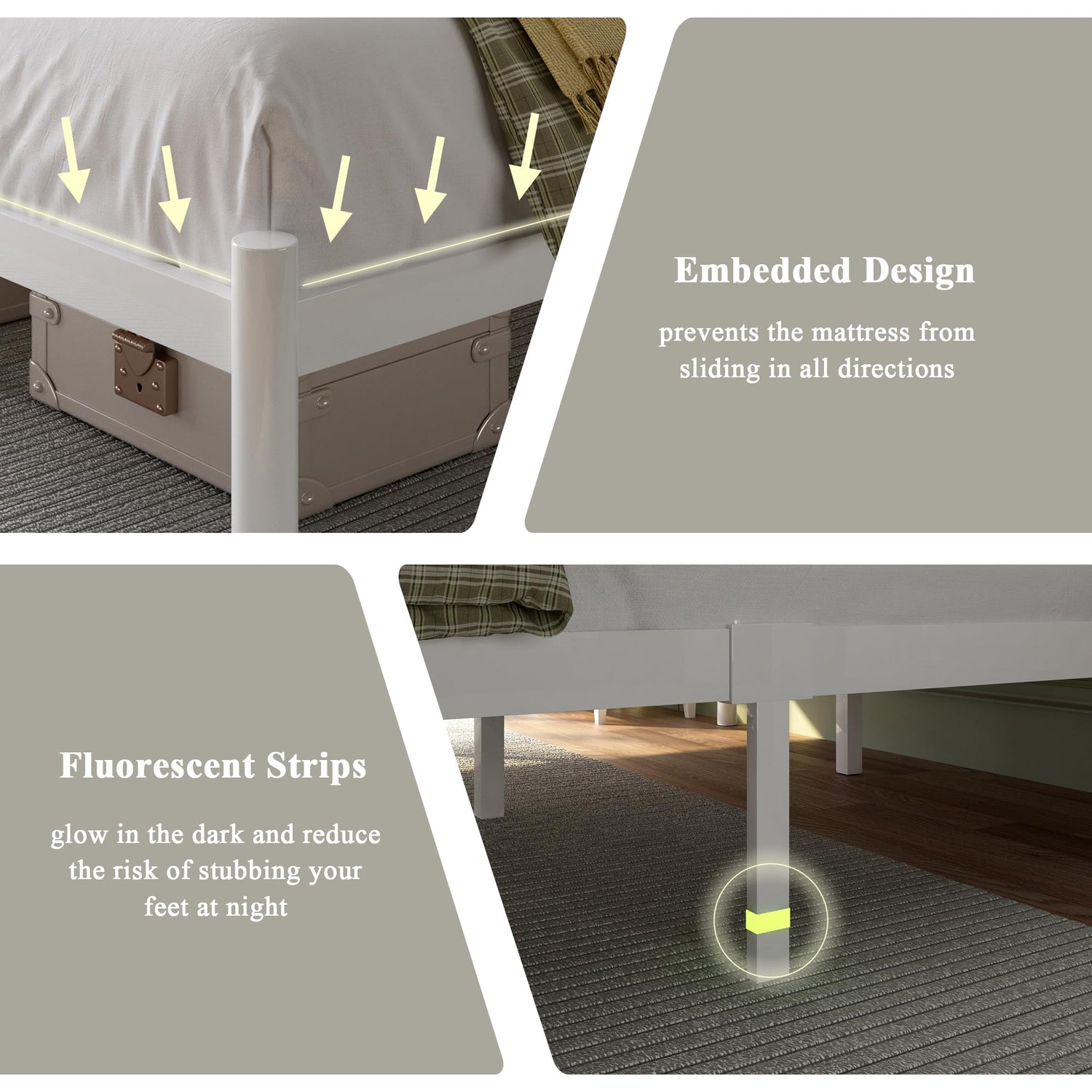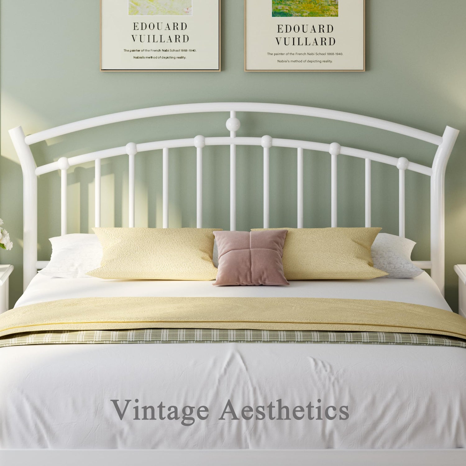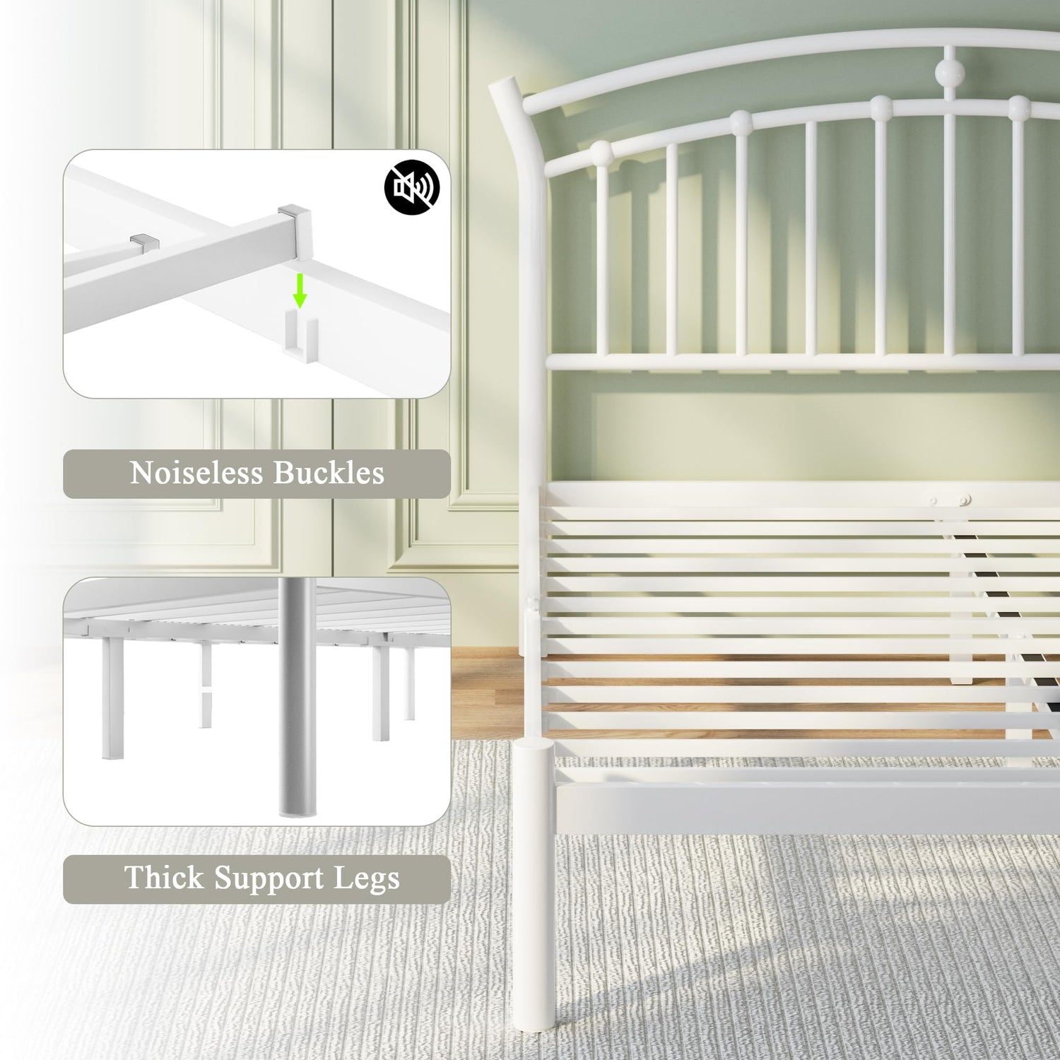 Feonase Queen Size Metal Bed Frame with Retro Headboard, Hardened Steel Tube, 12" Under-Bed Storage, No Box Spring Needed, Easy Assembly, White