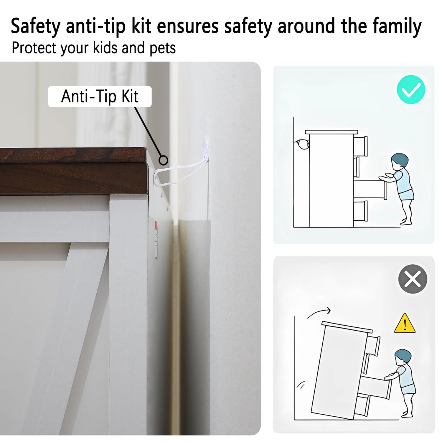 - Stability and Durability: The farmhouse dresser is made of high quality MDF, which is scratch resistant and not easy to bend or crack. The floor standing base design enhances the stability of the dresser with an anti-tip device for your peace of mind. The top can hold up to 150lbs and the drawers can hold up to 25lbs. The high-quality finish ensures that the dresser is easy to clean and resistant to daily wear and tear, extending its lifespan