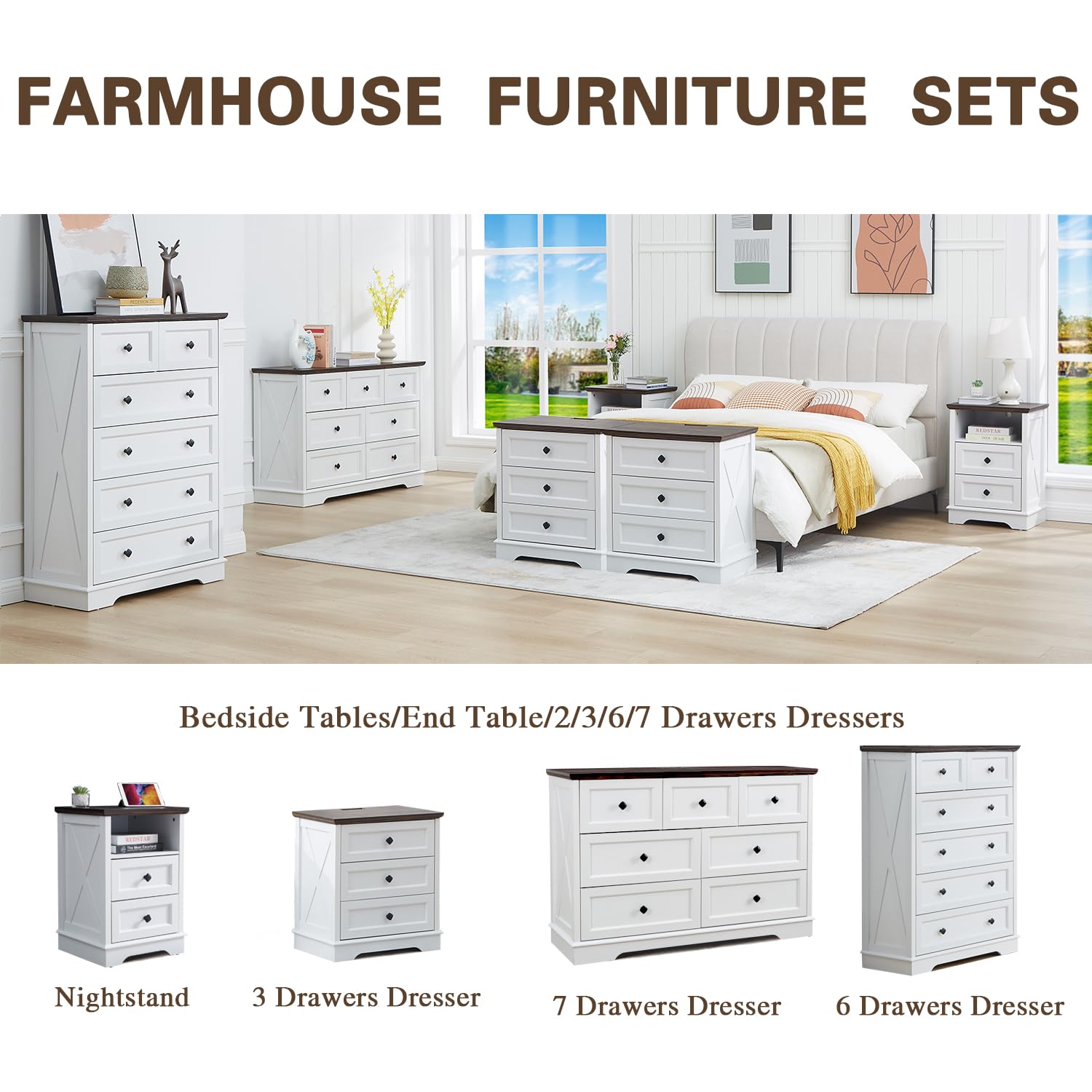 - Aesthetic Furniture:The X-shaped design on the side panels of this rustic chest of drawers adds farmhouse style, complete with delicate pulls, and a white finish paired with brown wood tops, combining vintage elements to bring the perfect visual touch to your home. It's a simple yet striking combination for those who love vintage style. The storage cabinets are exquisitely designed to add a reliable and aesthetically pleasing look to your home