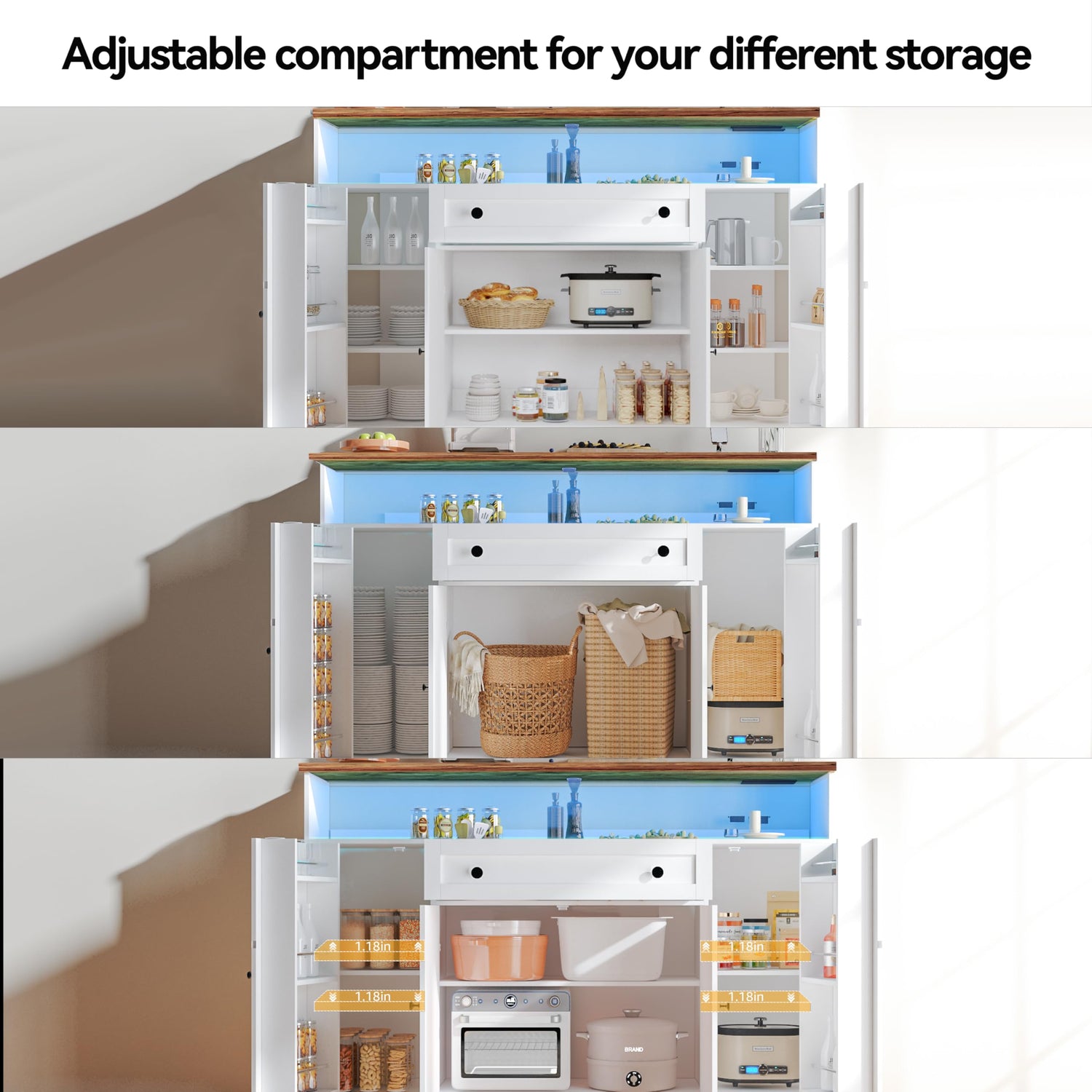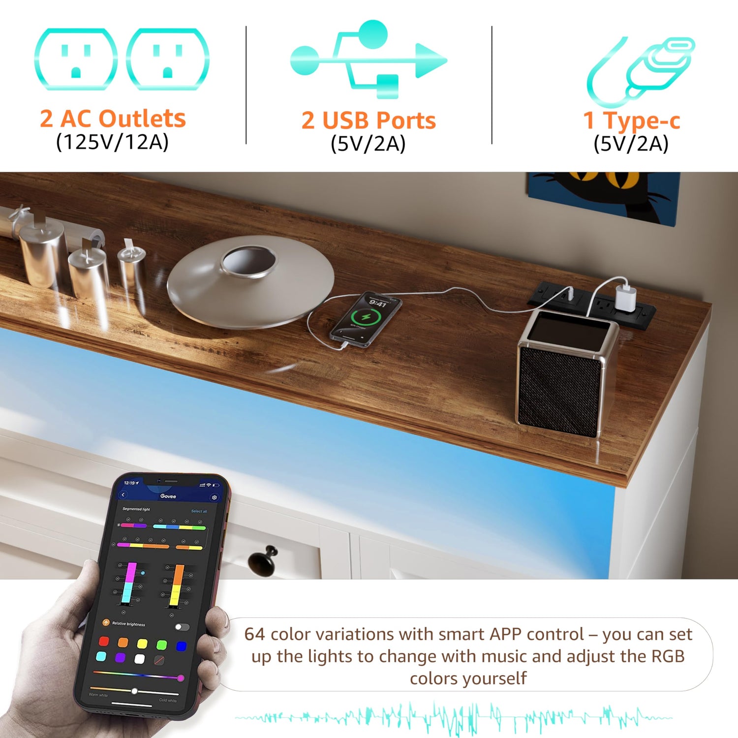 - 【Multi-functional Upgrades】FJTJBSI Sideboard Buffet comes with a built-in power outlet and LED lights that can be intelligently adjusted through the app. With over 64 DIY colors to choose from, you can also switch the light colors to match your music. Our farmhouse storage cabinet also comes with a built-in power outlet (2AC + 2USB + 1TC), allowing you to easily charge your devices without the need for additional extension cords.