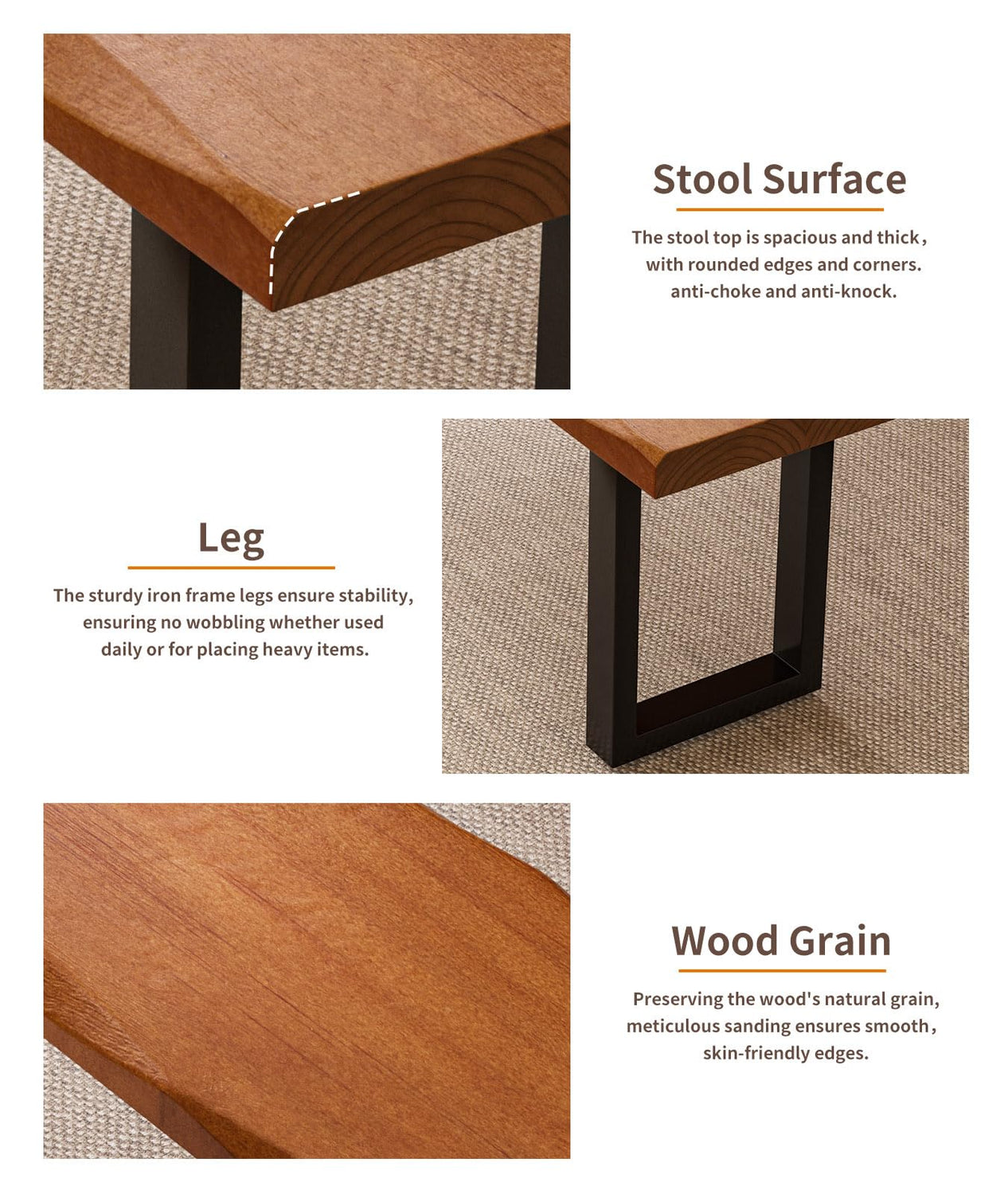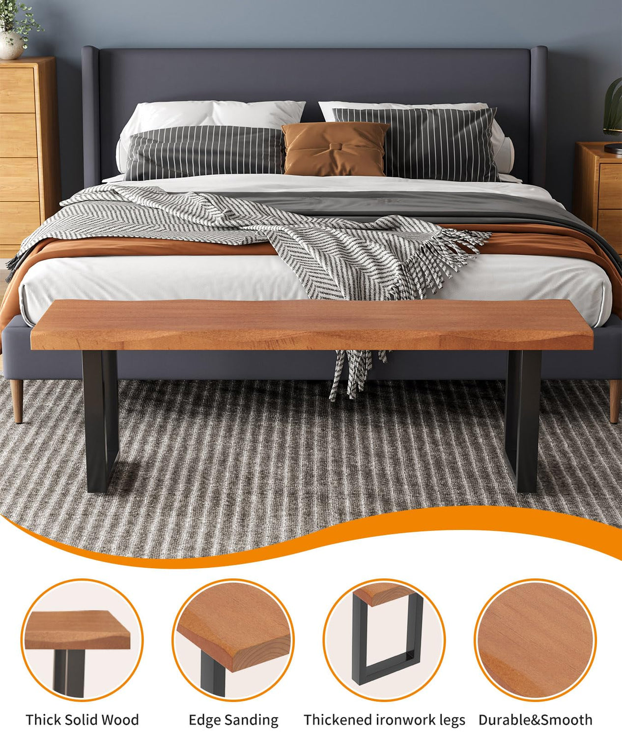 FKCSV Modern Rustic Solid Wood Bench with Black Metal Legs, Industrial Farmhouse Style, Natural Wood Finish