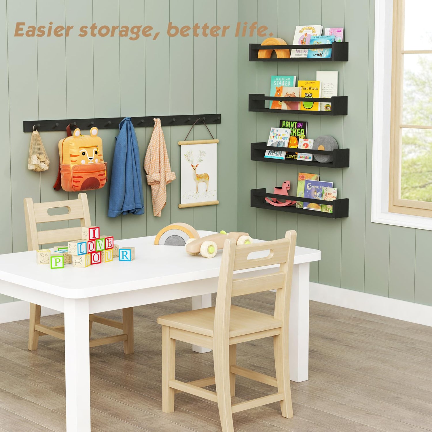 - 【Sturdier and Easy to Install】This wall mounted coat hooks set of 4 constructs of premium solid bamboo wood. Each Peg of coat hanger rack bearing capacity is up to 20 lbs. They can be used as wall hooks in nursery, kids room, girls room, boys room, bedroom, classroom. Easy to assemble with all necessary hardware included according to the instruction steps.