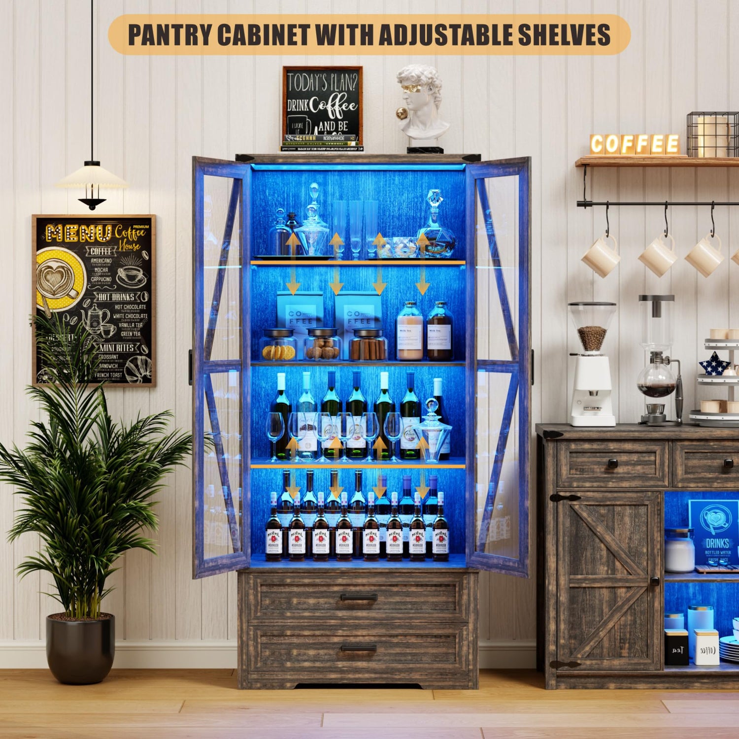FREDEES Rustic Brown Farmhouse Storage Cabinet with Adjustable Shelves and LED Display