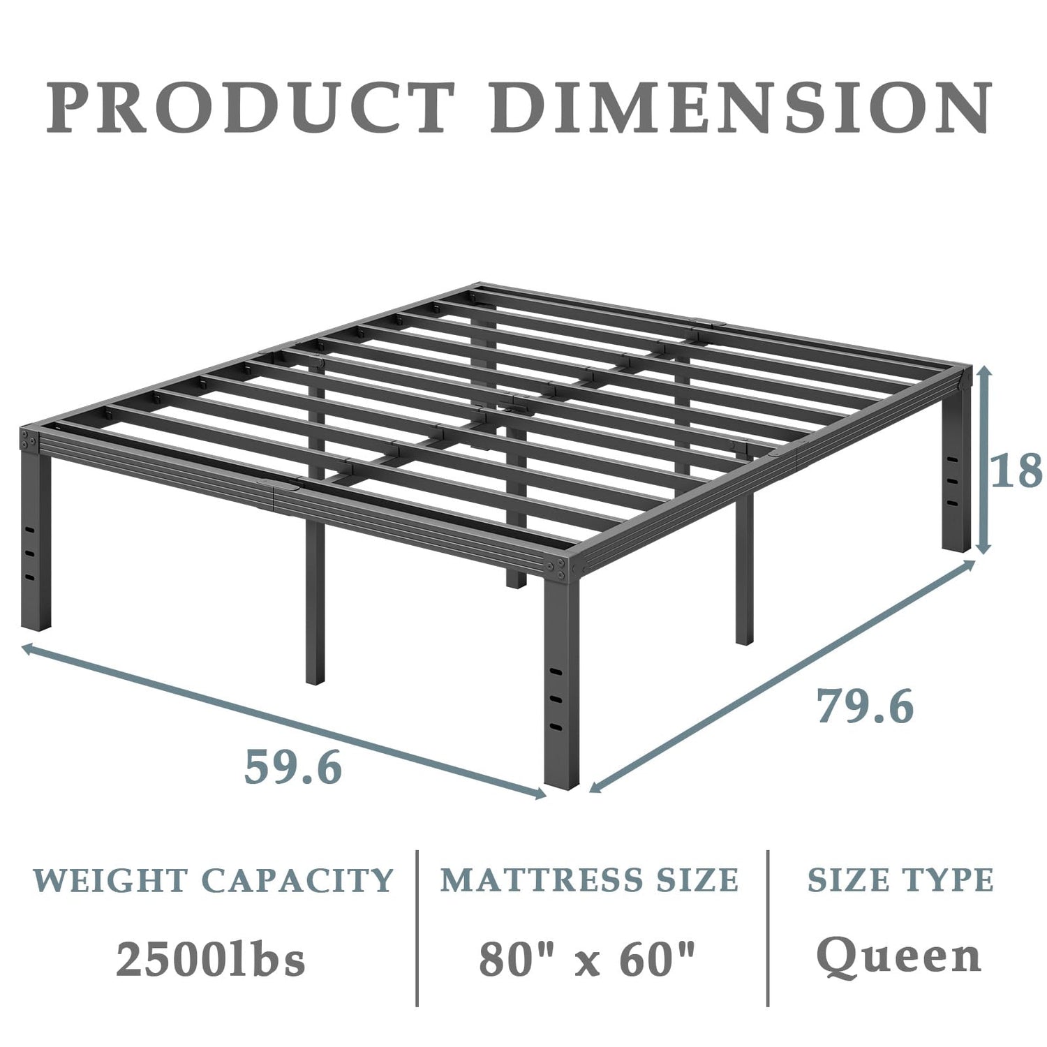 - HEAVY DUTY QUEEN BED FRAME: Reinforced steel support slats, 2500 LB of weight capacity to give the mattress stable support, help extend the life of the mattress, queen bed frame no box spring needed