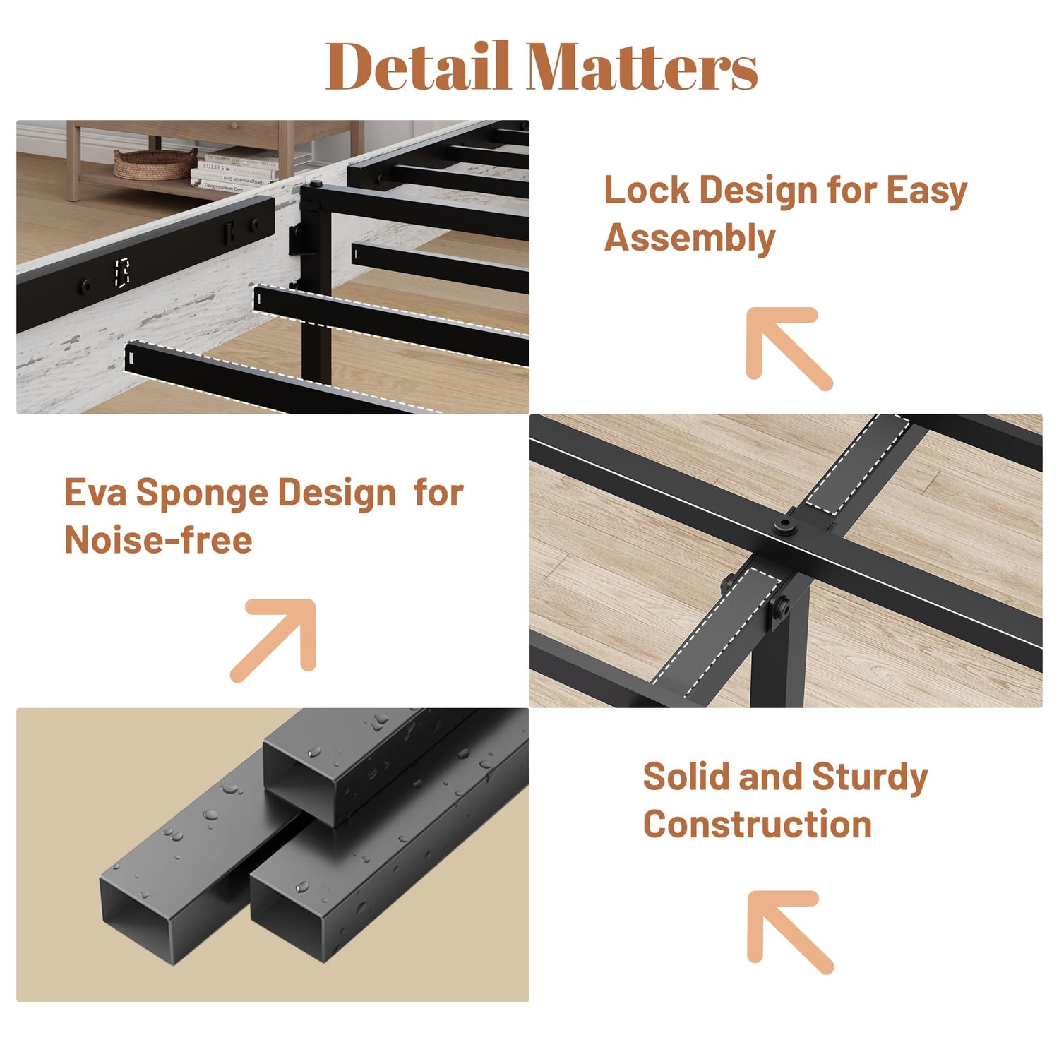 - Easy Assembly: Our bed frame is designed for effortless assembly, allowing you to set it up quickly and enjoy its benefits in no time.