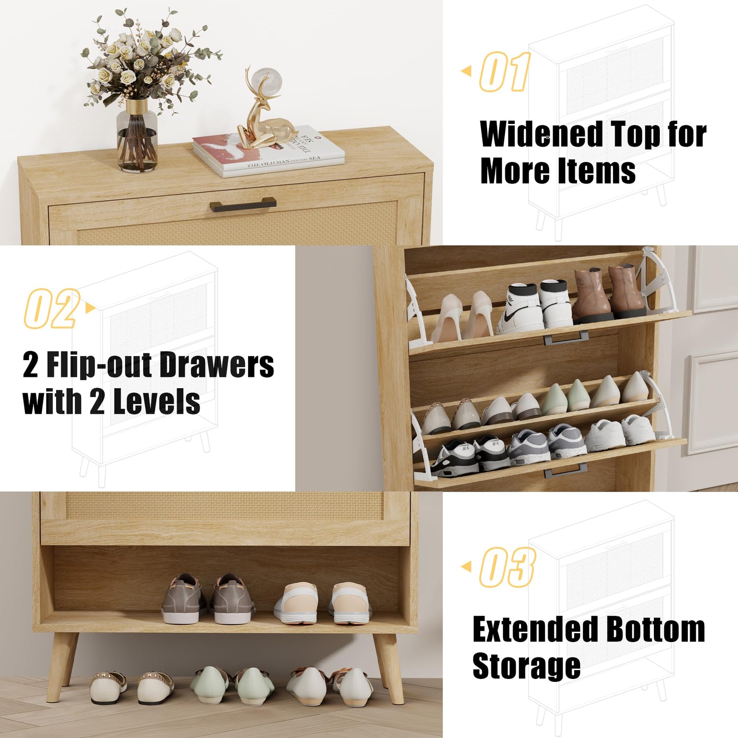 Gadroad Shoe Storage Cabinet with 2 Flip Drawers, Freestanding Hidden Shoe Organizer with Wood Legs, Farmhouse Narrow Shoe Rack for Entryway, Living Room, and Bedroom (Natural)