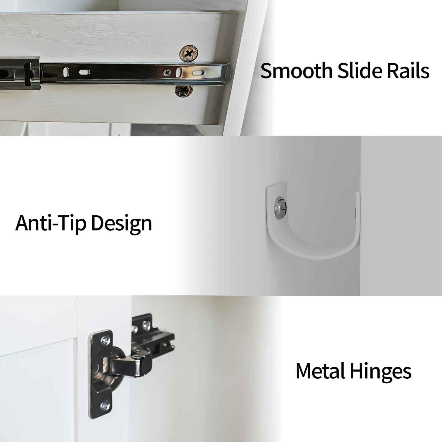 - Sturdy & Durable: Crafted from quality engineered wood in a durable white finish, this cabinet features smooth-running drawers and metal handles to ensure long-lasting stability and durability, safety is prioritized with an anti-tipping device on the back, offering peace of mind during use.