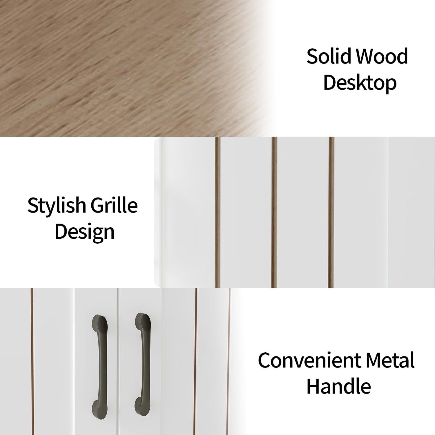 - White Buffet Sideboard: Designed to complement a variety of décor styles, the sleek white finish and stylish grille create a sophisticated yet cosy ambience, with barn doors adding a rustic touch while protecting your belongings from dust and damage.