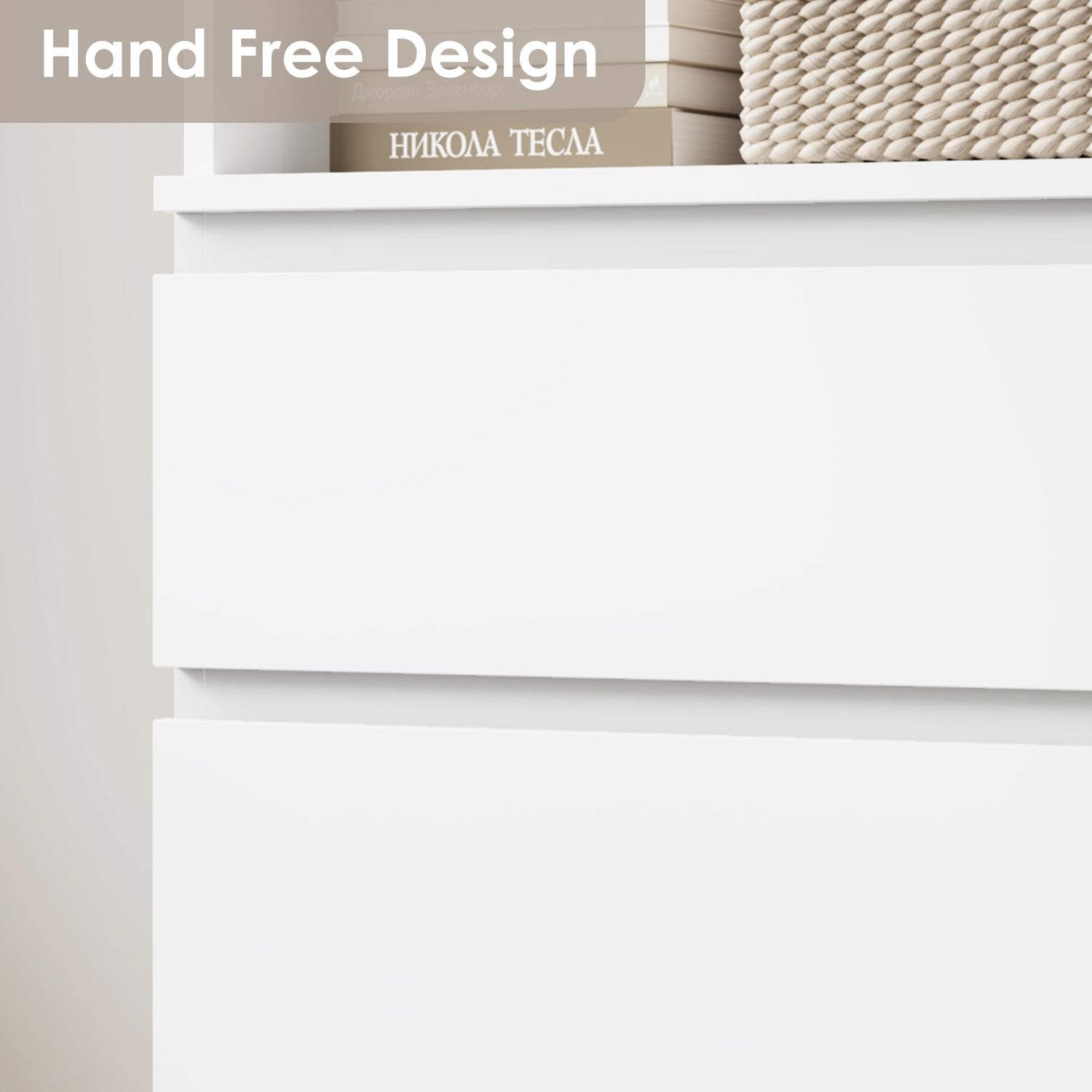 - Modern Style:Bookshelf and drawers combine to provide ample storage space. Crafted with a sleek white finish, This bookshelf with storage seamlessly blends with any decor style. The unique slanted design of the handleless drawer adds an elegant touch and enhances the overall aesthetic appeal.