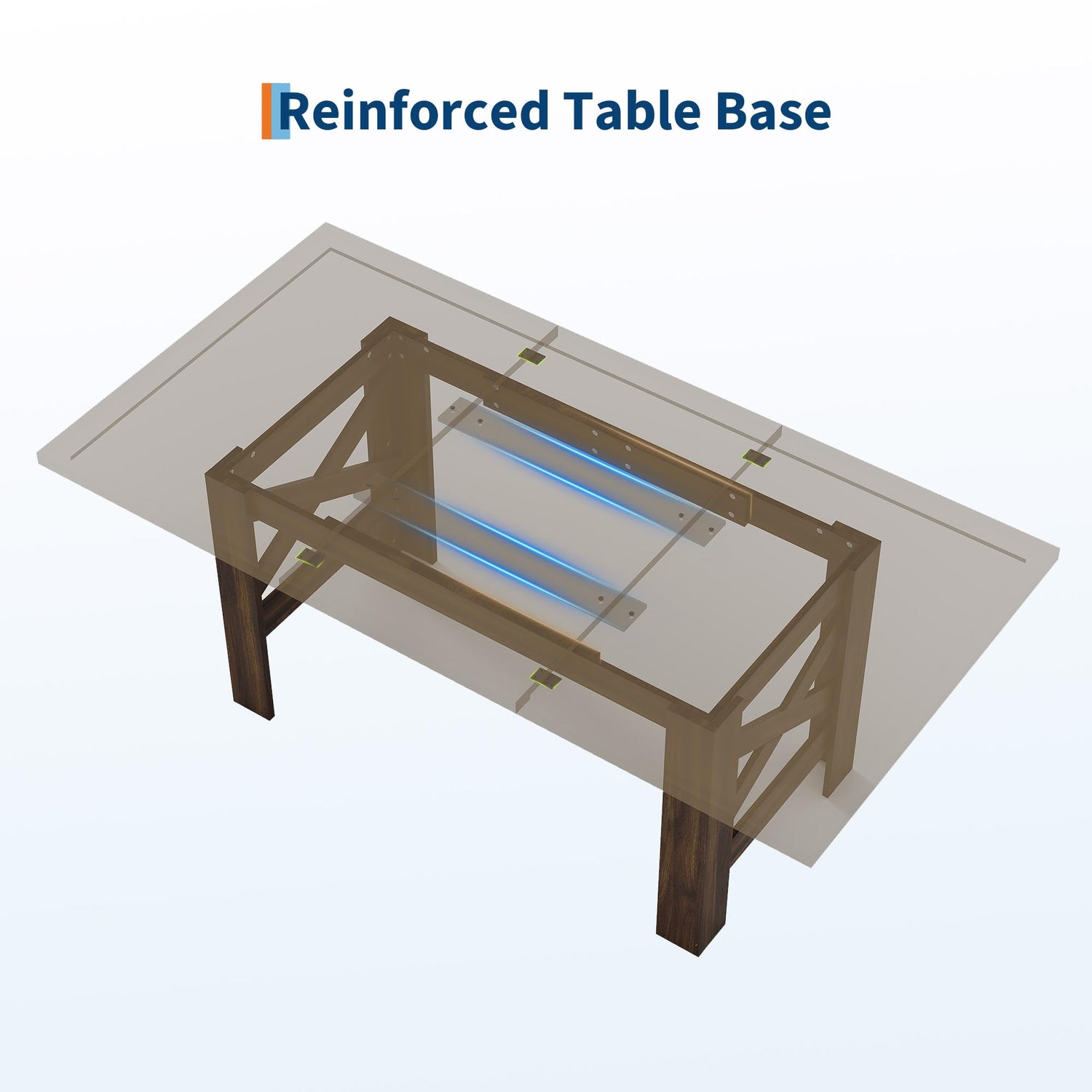 - 2. Sturdy Triangular Leg: Designed with a classic farmhouse "X" and "H" shape base, this dining table for 6 features widened 4*4 in triangular wooden legs reinforced with extra supports. The robust construction guarantees outstanding stability and a remarkable load-bearing capacity of up to 400 LB, offering a secure and reliable foundation for everyday use