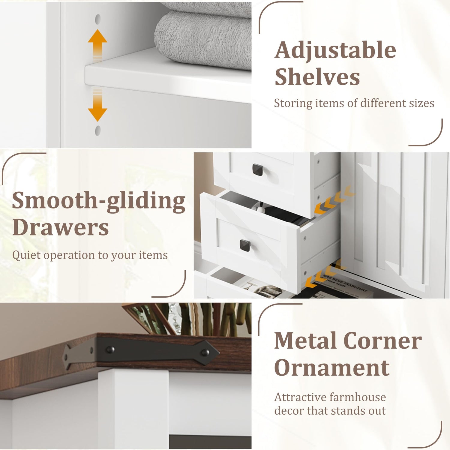 GarveeHome Farmhouse 5 Drawer Dresser for Bedroom, 48 in Tall Wood Dresser Chest of Drawer with Sliding Barn Door, Adjustable Shelf, Storage Organizer for Bedroom, Hallway, Living Room, Kitchen, White