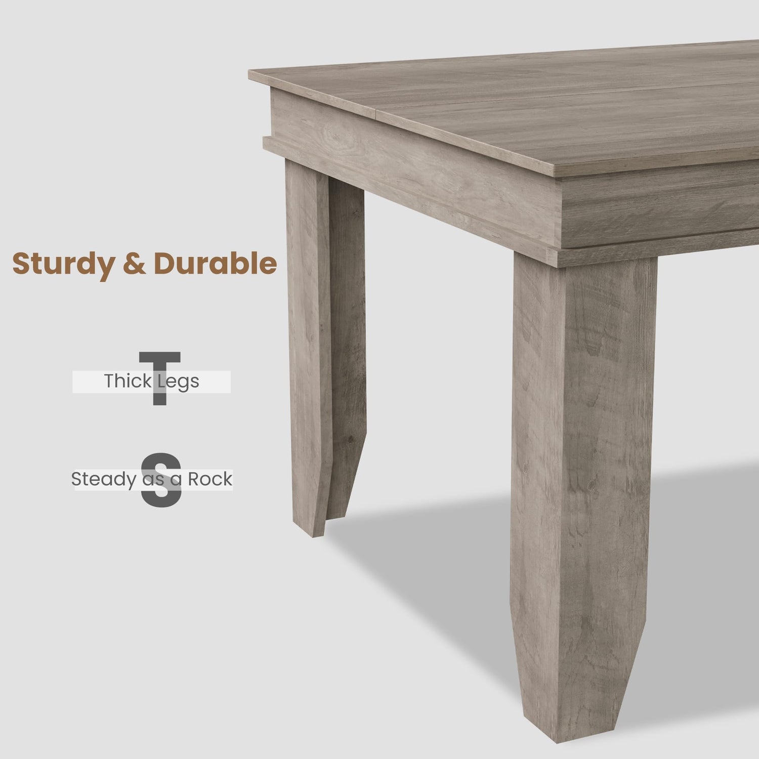 GarveeHome Farmhouse Dining Table for 6-8 People, 70.87 in Long Wooden Kitchen Table with Sturdy Frame & Rustic Grey Finish - Seats 6 Rectangular Counter for Dinner, Kitchen, Dining Room