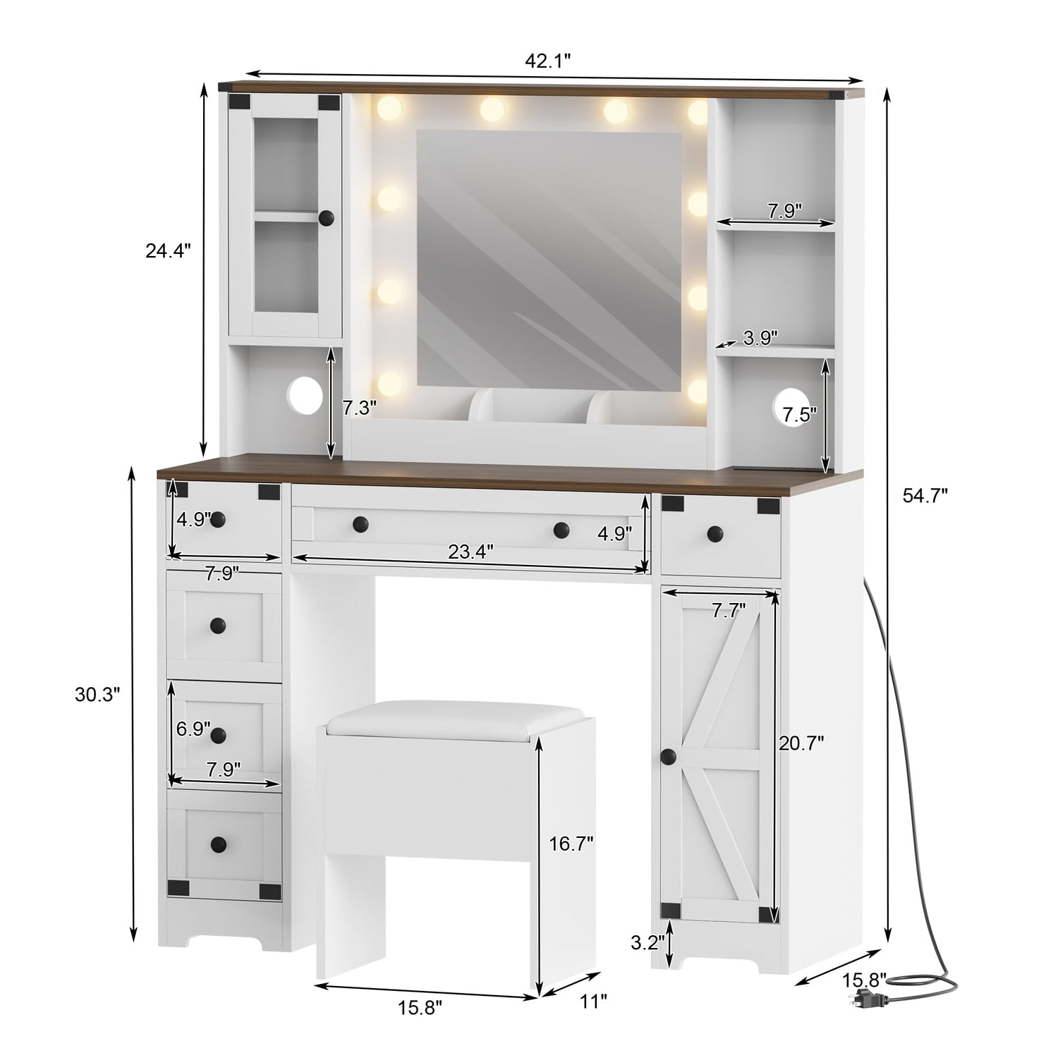 - Perfectly Sized for Any Room: This vanity desk measures 15.8"(D) x 42.1"(W) x 54.7"(H) and comes with a comfortable stool measuring 11"(D) x 15.8"(W) x 16.7"(H).