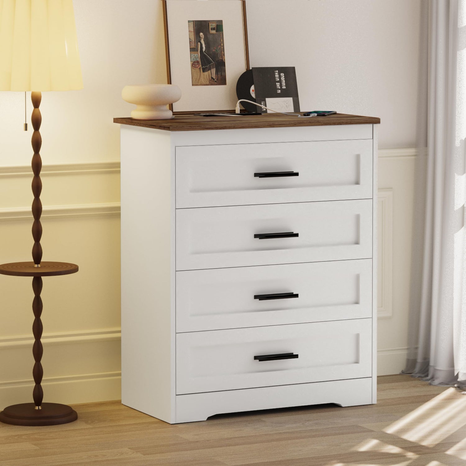 GEPELCN Farmhouse 4 Drawers Dresser for Bedroom Rustic Chest of Drawers with Natural Texture White Drawers Organizer for Living Room Hallway