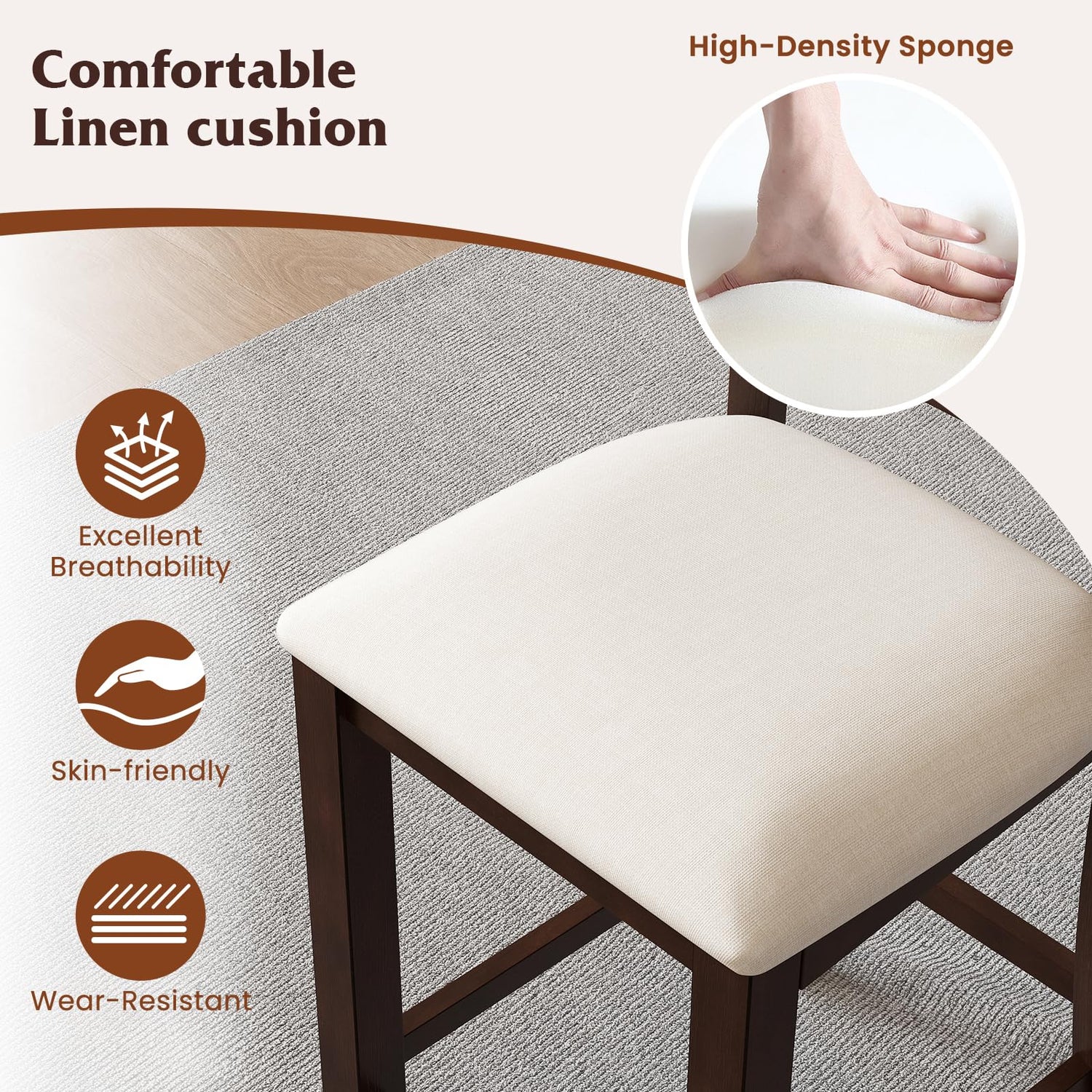 - [Comfortable Linen Cushion]: The wood bar chairs are equipped with cushions made of high-quality linen fabric and high-density sponge, offering excellent breathability and comfort. The linen material is skin-friendly, wear-resistant, and suitable for long-lasting use.