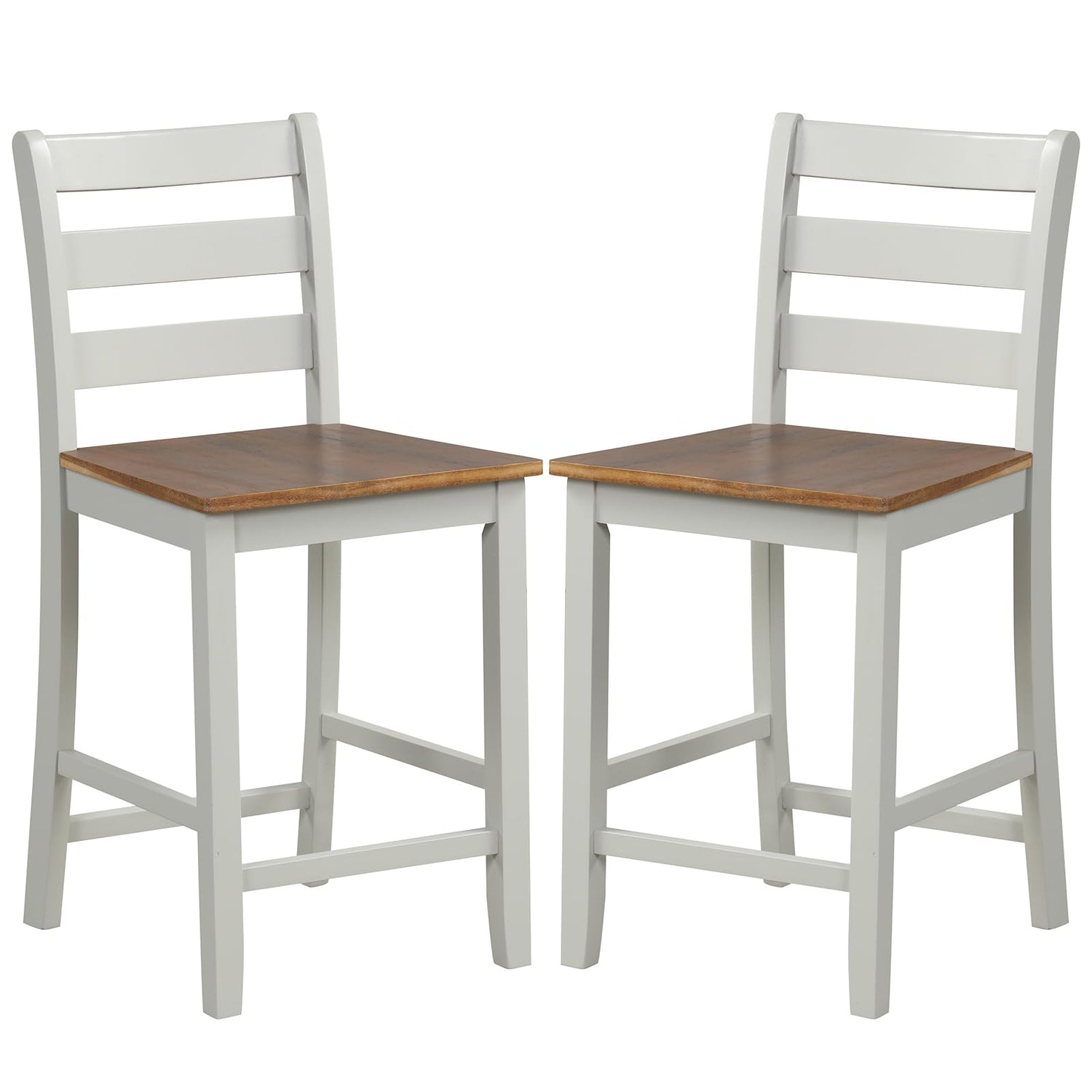 Giantex Counter Height Bar Stools Set of 2, 24" Farmhouse Counter Height Bar Dining Chairs with Back, Rubber Wood Footrest, Acacia Wood Legs, Wooden Barstools for Kitchen Island Pub Restaurant, White