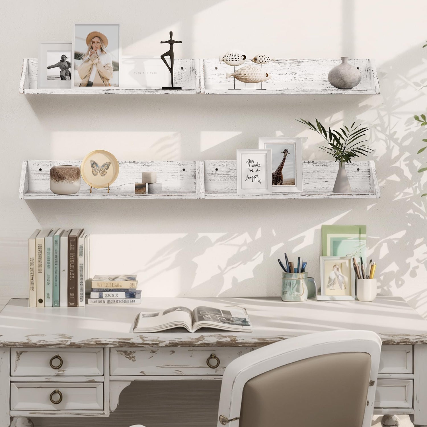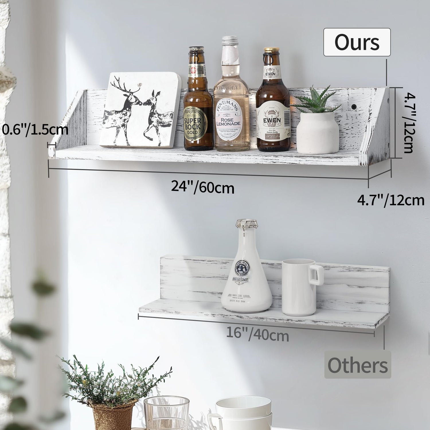 - Both Beautiful and Practical: Measuring 24"L x 4.7"W x 4.7"H and supporting up to 22lbs, these shelves easily accommodate books, decor, and everyday items, helping you maintain an organized, tidy environment