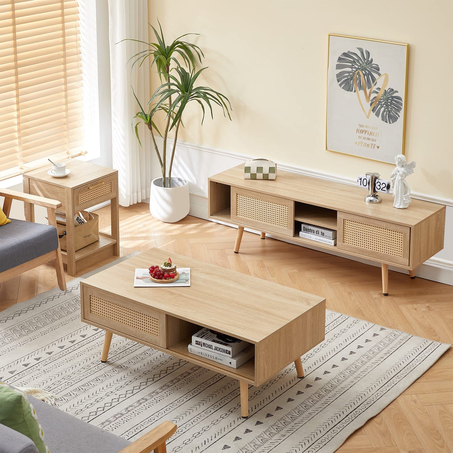 • Durable and Sturdy: This media console center is built to last, with a sturdy wood frame and rattan sliding doors. The high-quality construction ensures that it will withstand daily use and remain a reliable piece in your home for years to come.