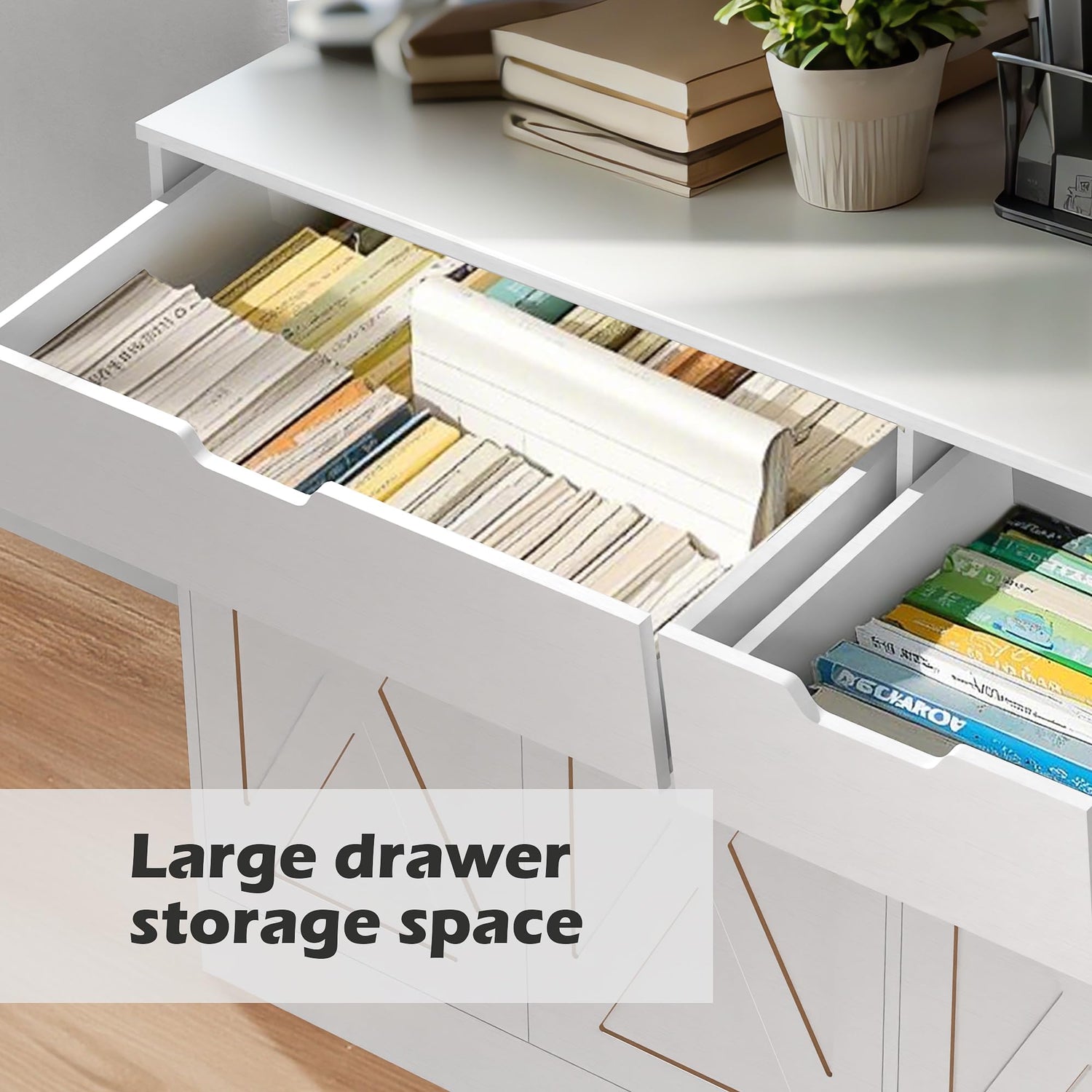 - 【Farmhouse Aesthetic, Modern Convenience】Distressed white finish and antique-style handles add vintage flair, while the smooth countertop provides extra workspace for small appliances or decor.
