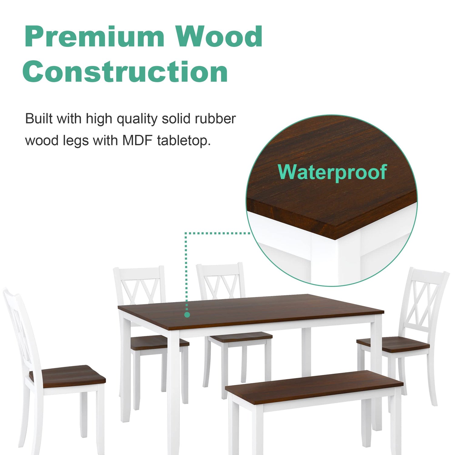 Harper & Bright Designs 6-Piece Dining Set with Bench, Farmhouse Rustic Kitchen Table Set with Wood Table, Bench and 4 Cross Back Dining Chairs, White+Cherry