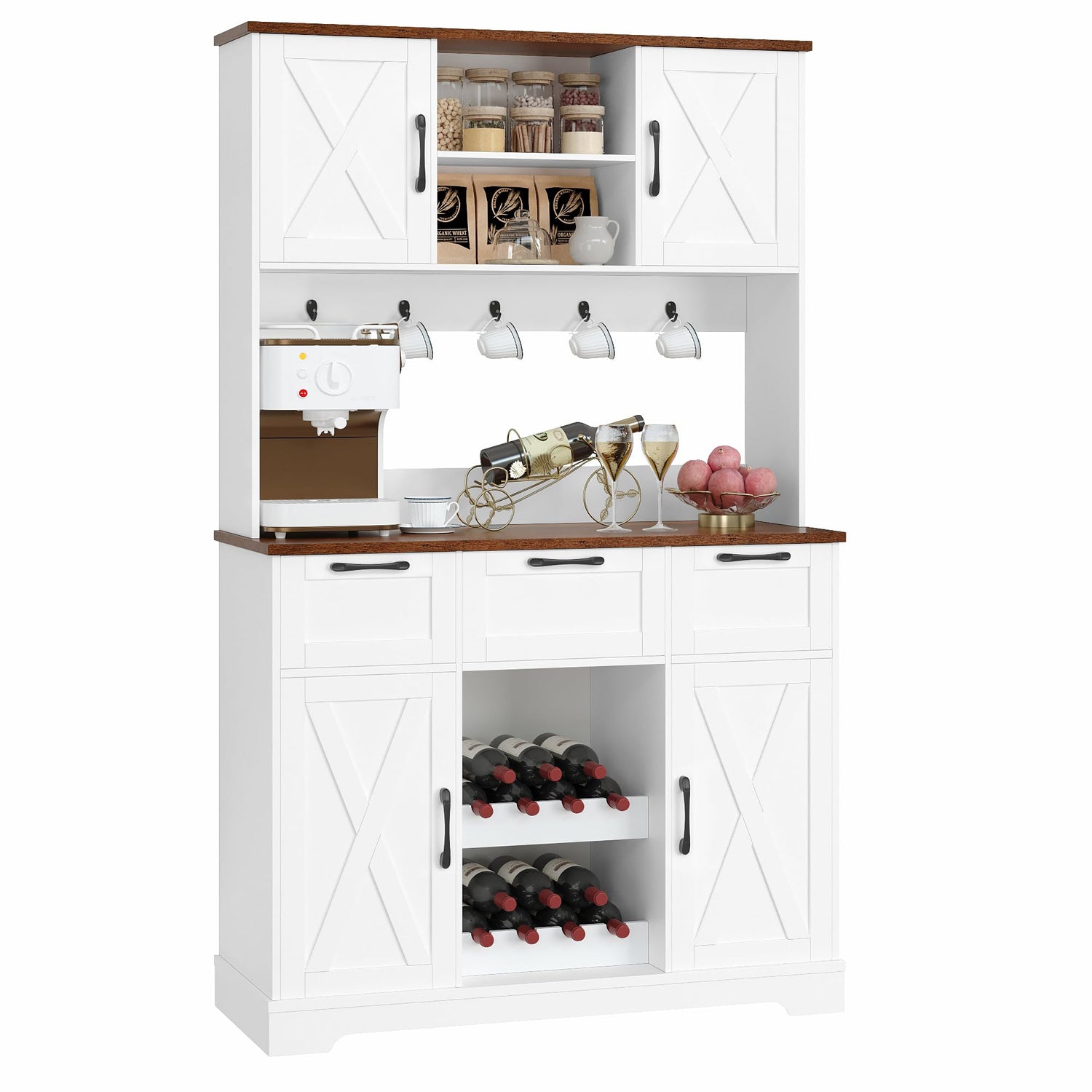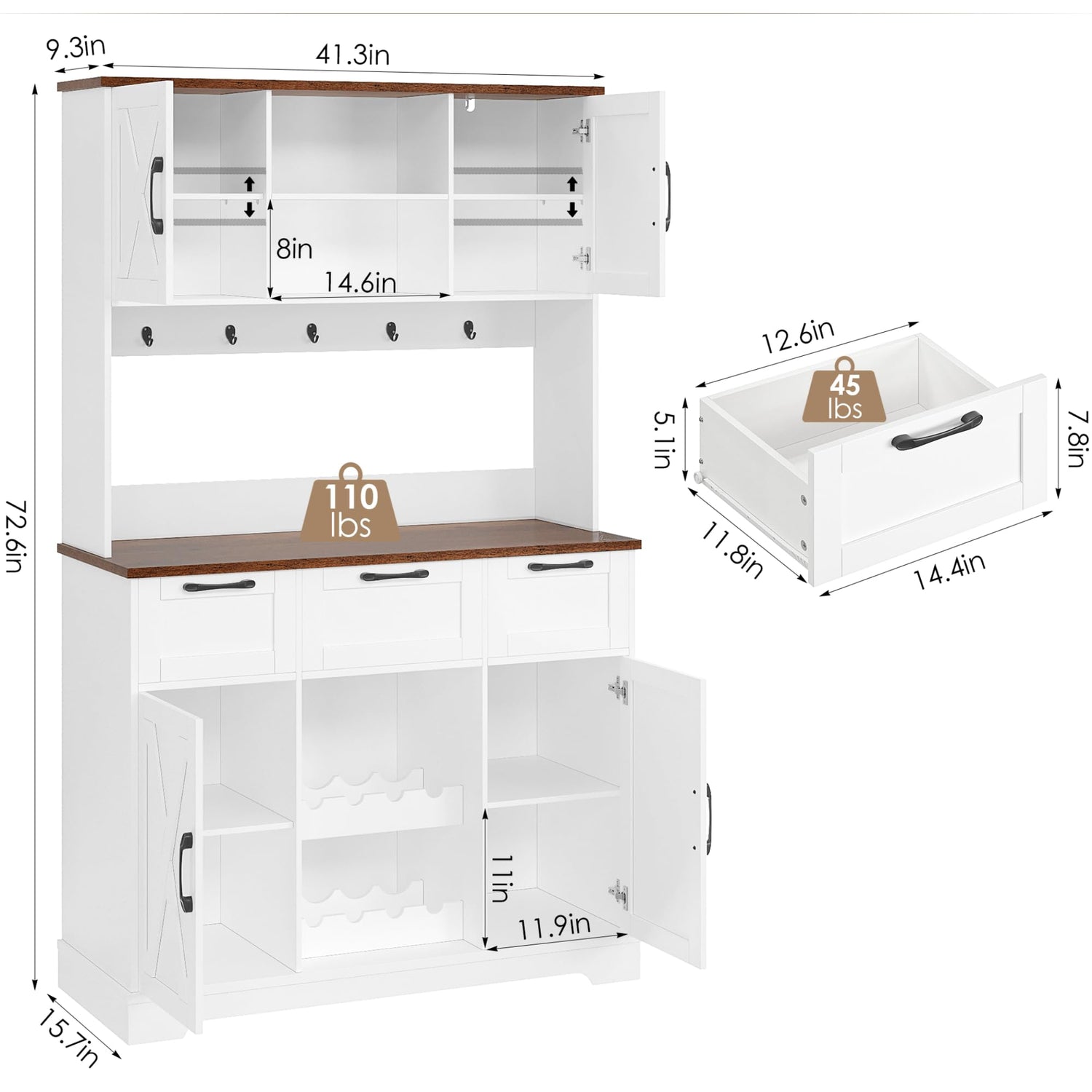 - Multiple Usage Scenarios: In addition to having a modern farmhouse appearance, the cabinet is also extremely functional. It can be a food pantry cabinet and microwave stand in the kitchen, a cupboard cabinet and hutch in the dining room, and a coffee bar and wine bar in the living room. No matter where it is, it's all practical and decorative.