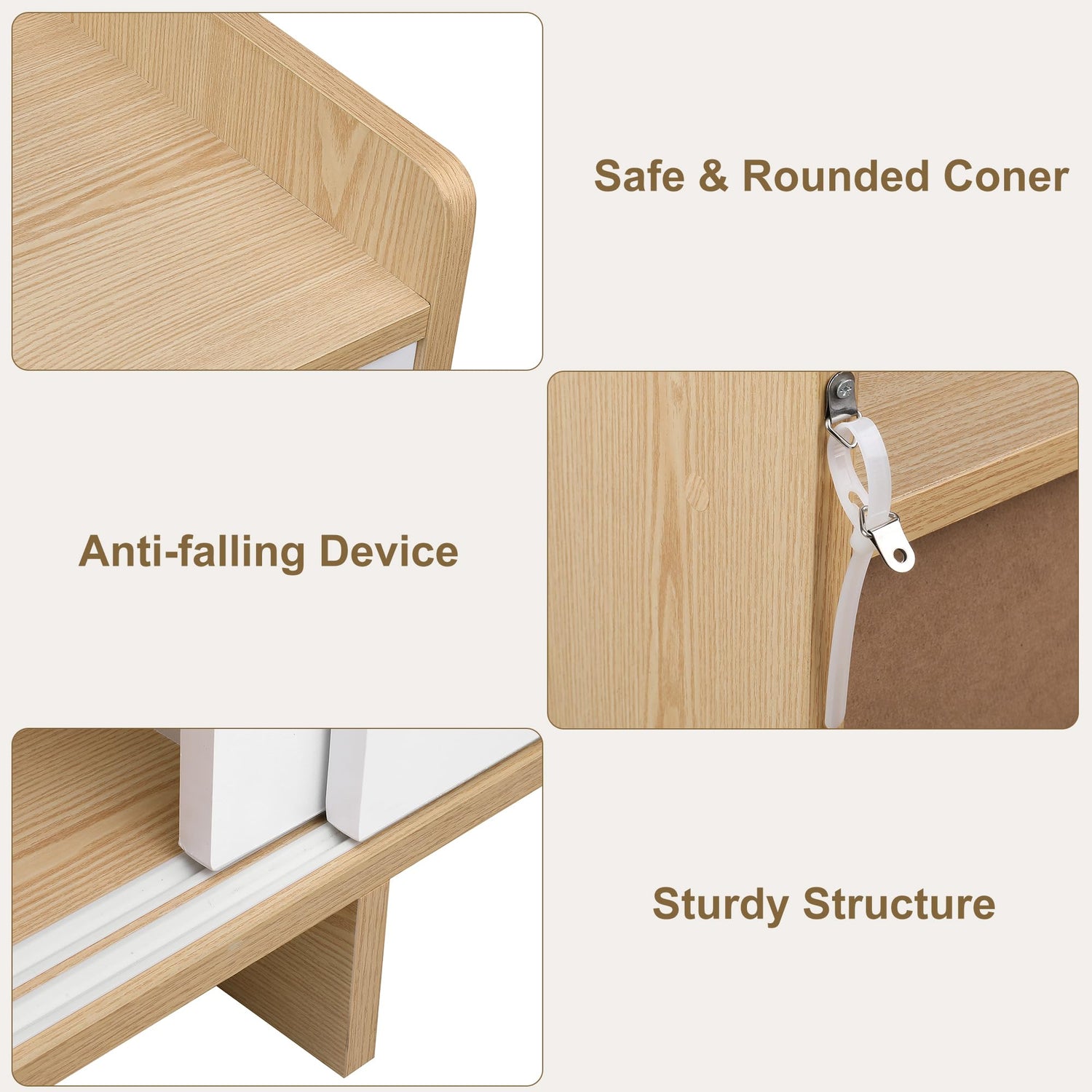 - Built to Last: The surface of the high-quality wooden boards used in the sideboard has been specially processed to be waterproof and easy to clean; the cabinet is equipped with the anti-toppling anchor and supported by sturdy wooden legs in the center of the bottom, which is safer and more durable, and can bear up to 286 pounds.
