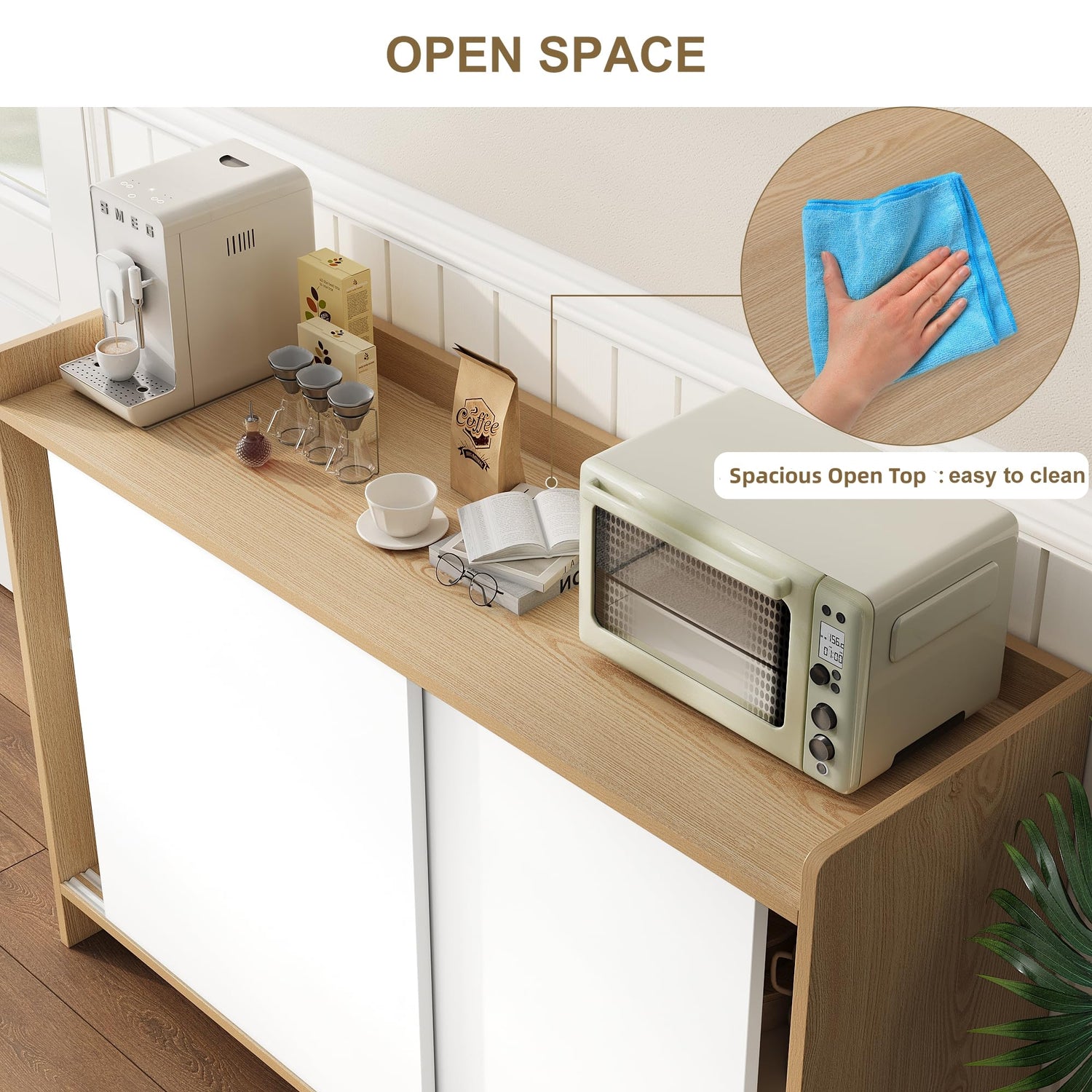 HIFIT Kitchen Buffet Cabinet with Storage, 43" Farmhouse Modern Coffee Bar Storage Cabinet with Sliding Doors/Shelf/Microwave Stand, Accent Sideboard for Kitchen Dining Living Room Entryway, White-Oak