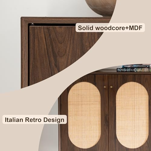 - 【Quality Material】: Our rattan cabinet with doors is made of wood core and premium MDF which promises a long service life. Natural rattan in oval design in doors make this dining room accent cabinet exquisite. Four solid wood legs with adjustable floor padded protect the floor very well and you can clean the floor easily.